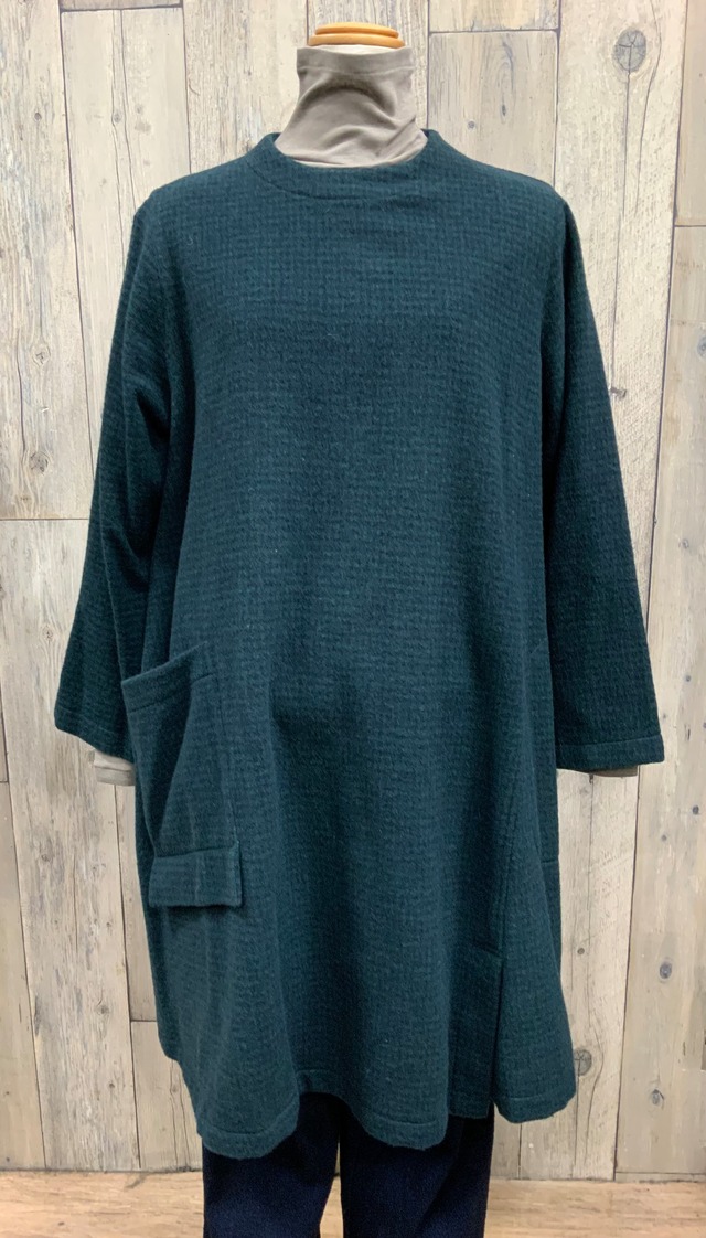 ◆ブランド:イフクラージュ ▪️日本製 ▪️商品価格 ¥29700(税込価格)→ ¥14850(税込価格) ▪️素材 ウール90% ナイロン10% ▪️サイズ 胸幅 約108cm 肩幅 約36、5cm 袖幅 約59cm アームホール 約54cm 袖丈 約56cm 着丈 約89cm 裾幅 約184cm 一枚着としてもとても暖かく上質なウールのチュニックブラウス 前開きタイプなので羽織り物としても活躍します 紺色に淡い水色のチェック柄 胸元より下部分に前後ボックスがありふんわりとしたデザインです 前見頃のボタンは男性仕立ての合わせとなります 左右にポケット有り ※パンツ、コートは別売り