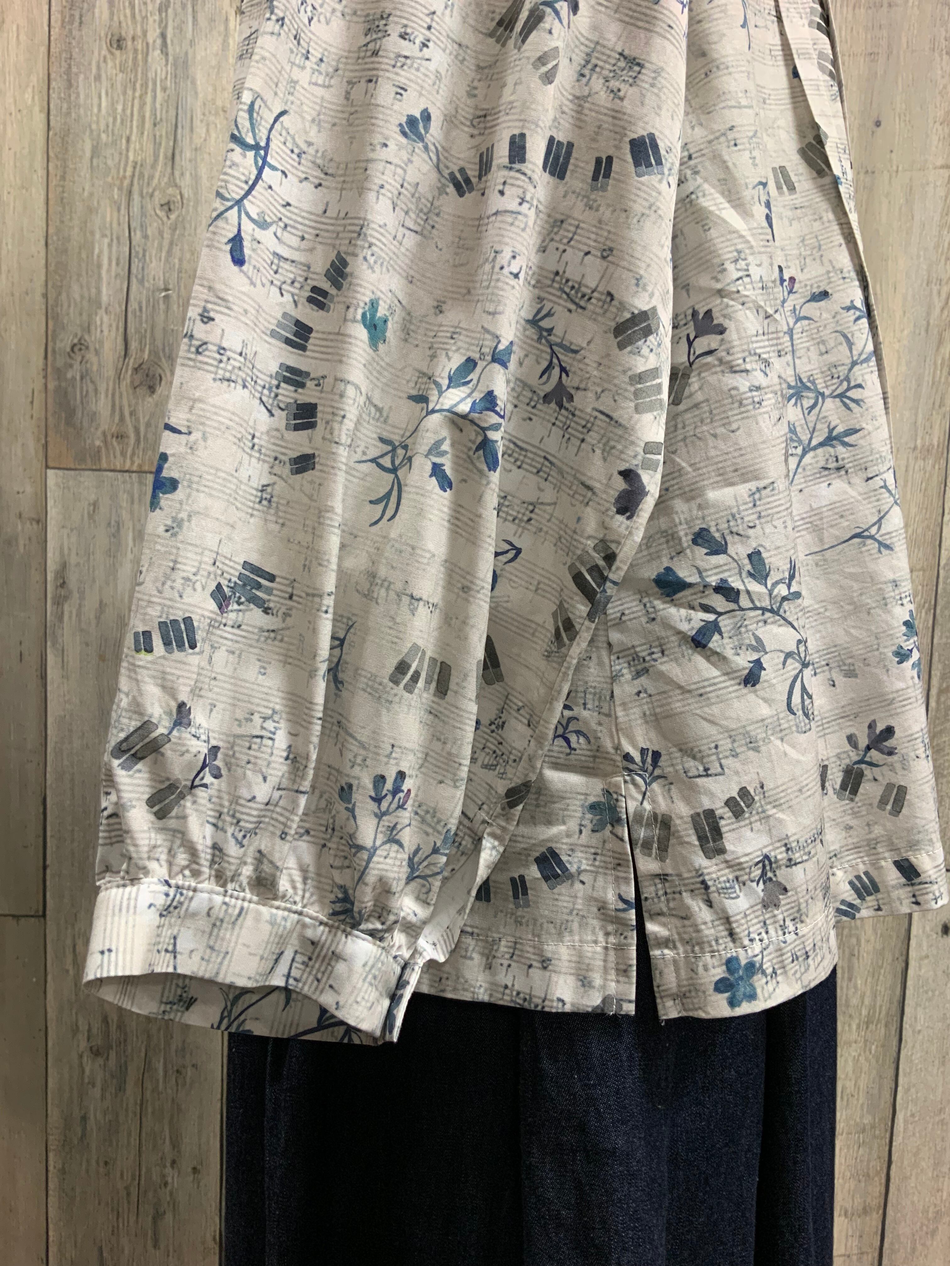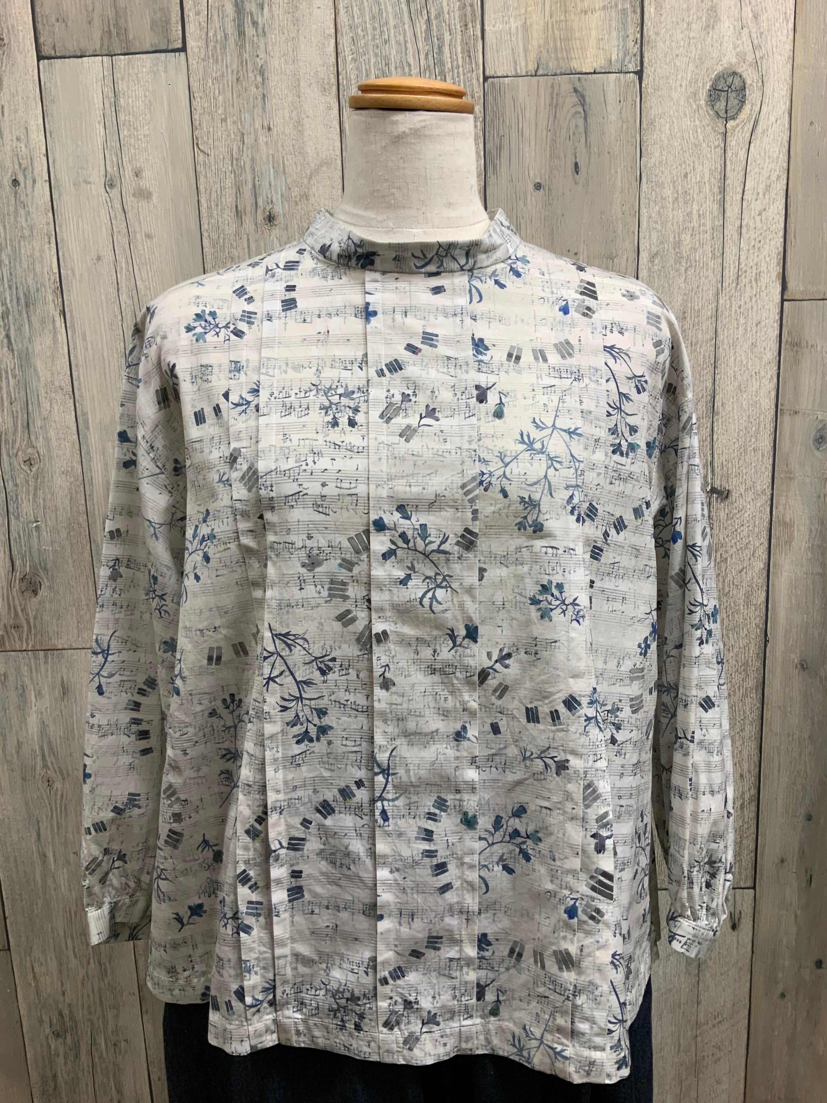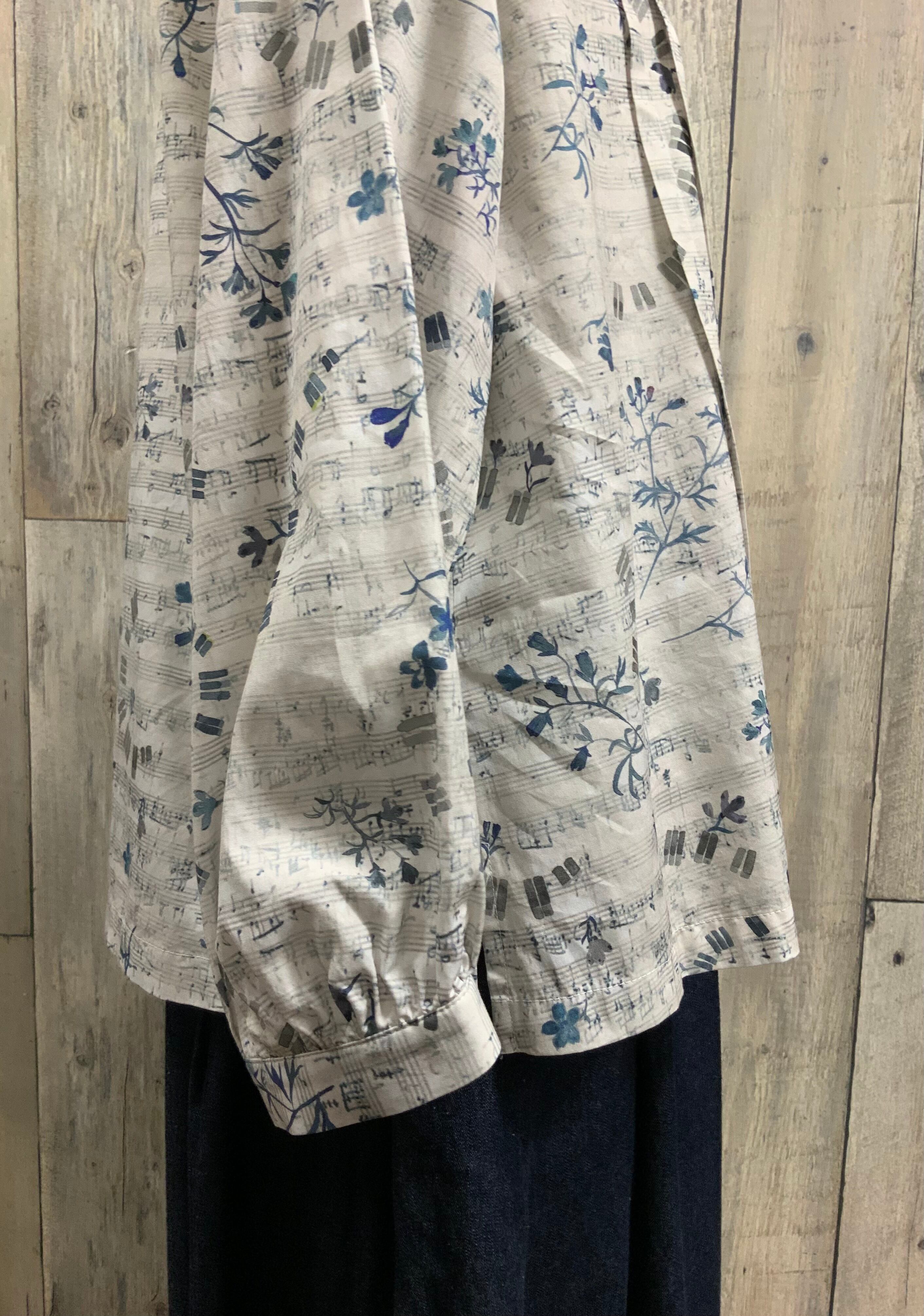 音符柄と花柄のアンティーク風のナチュラルブラウス