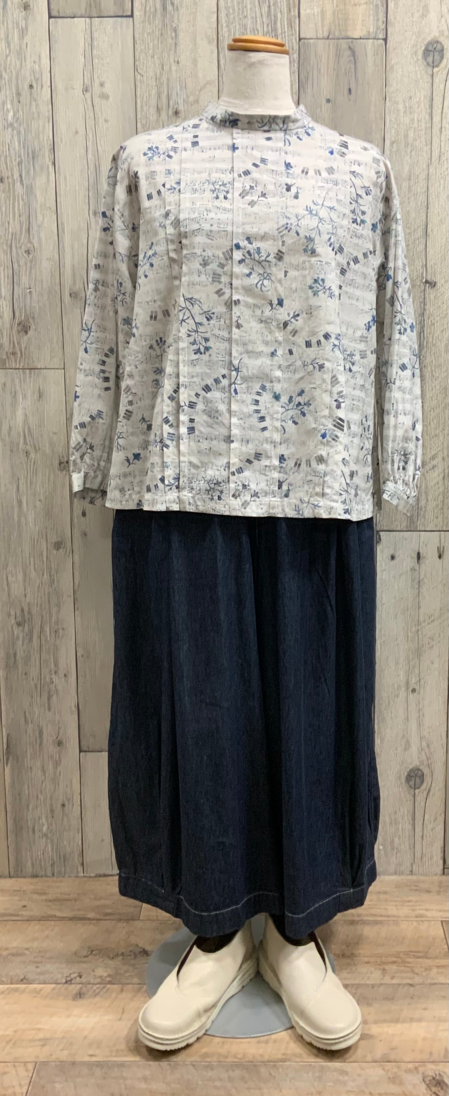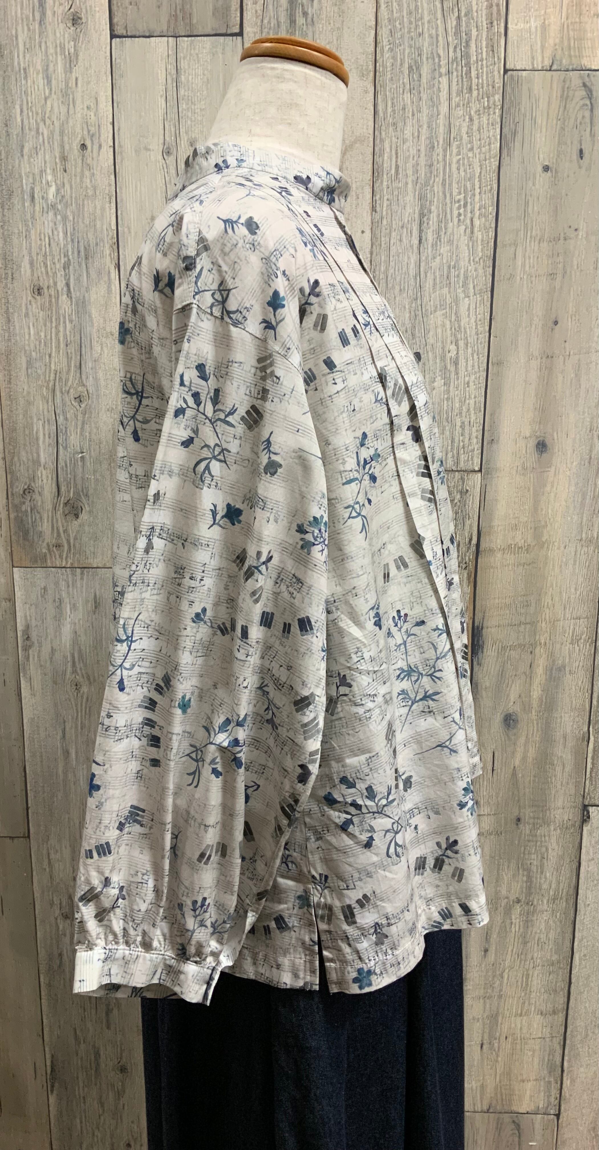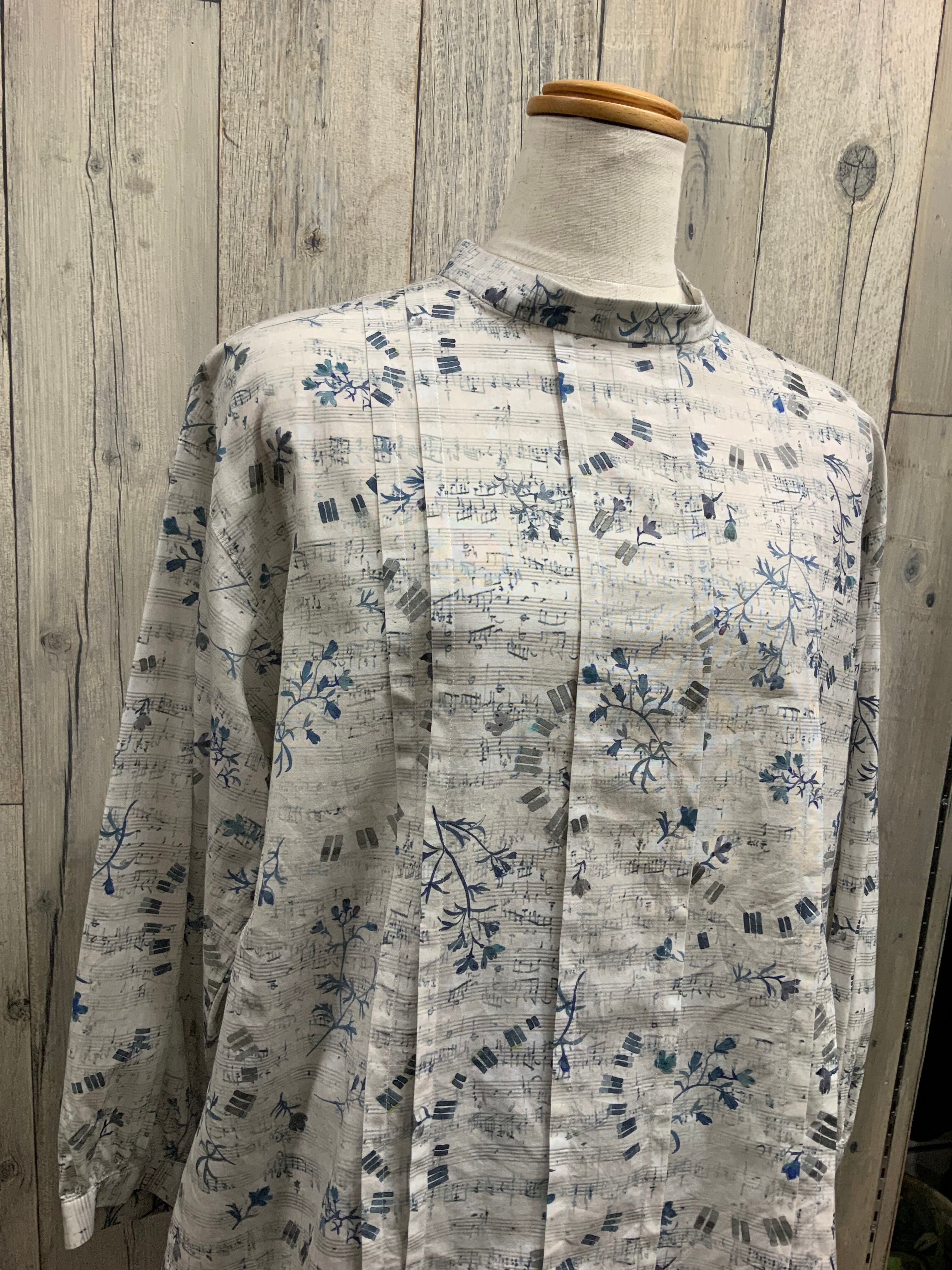 音符柄と花柄のアンティーク風のナチュラルブラウス