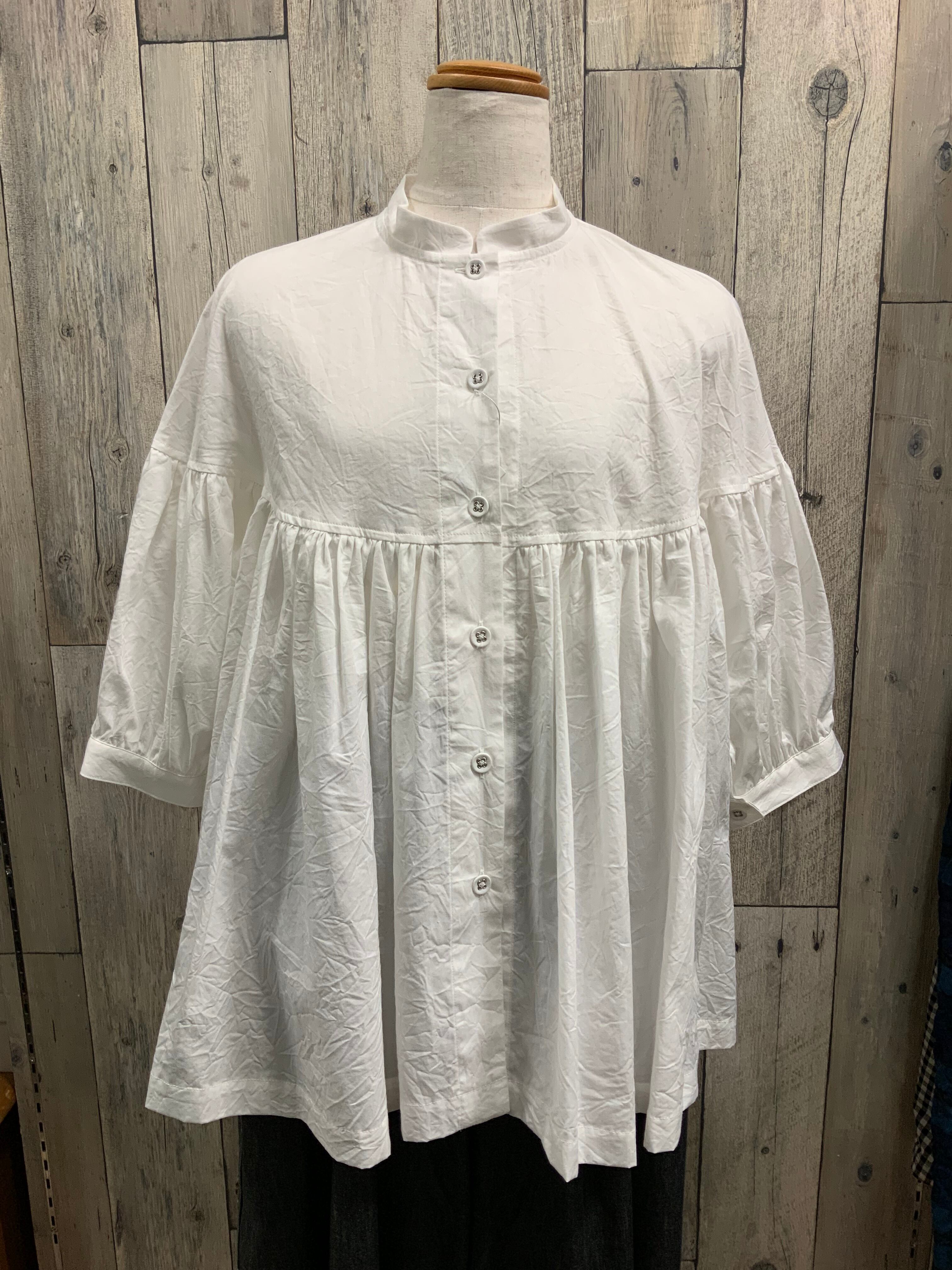 洗いざらしのシワはそのままの透け感がほぼ無い綿ブラウス