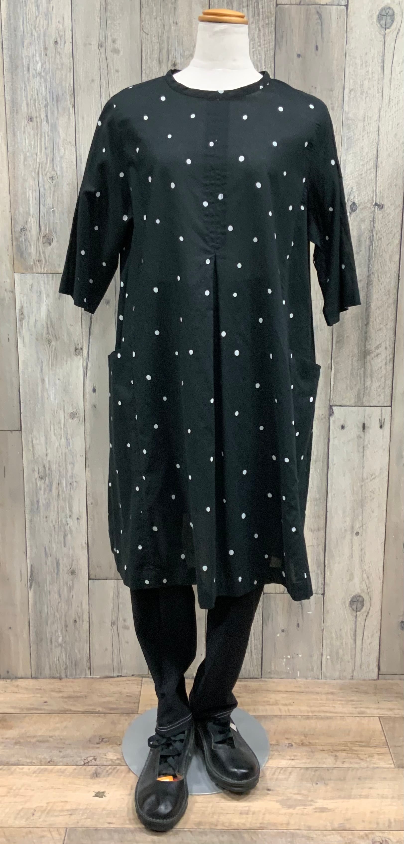 透け感のある綿麻水玉チュニックワンピース