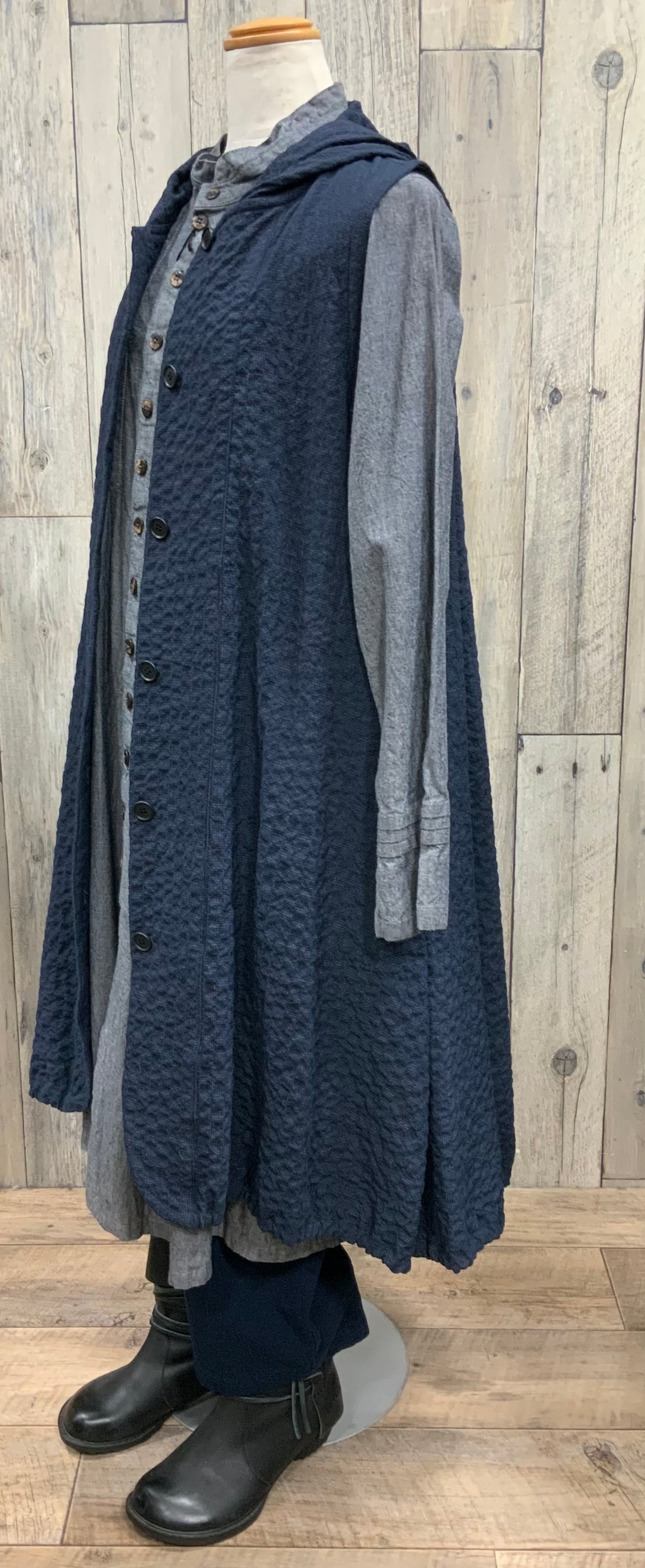 秋から春先迄活躍するフードロングベスト