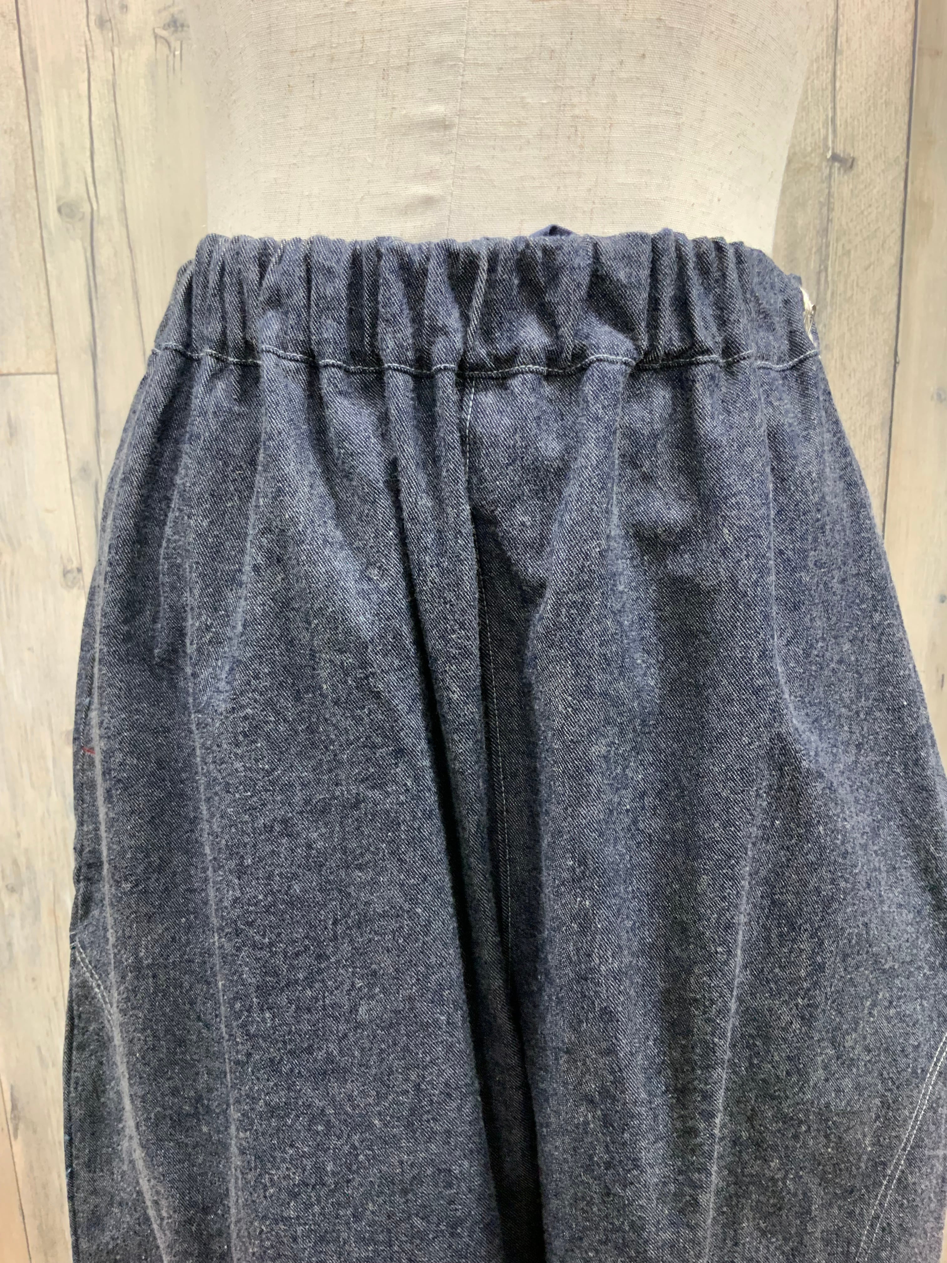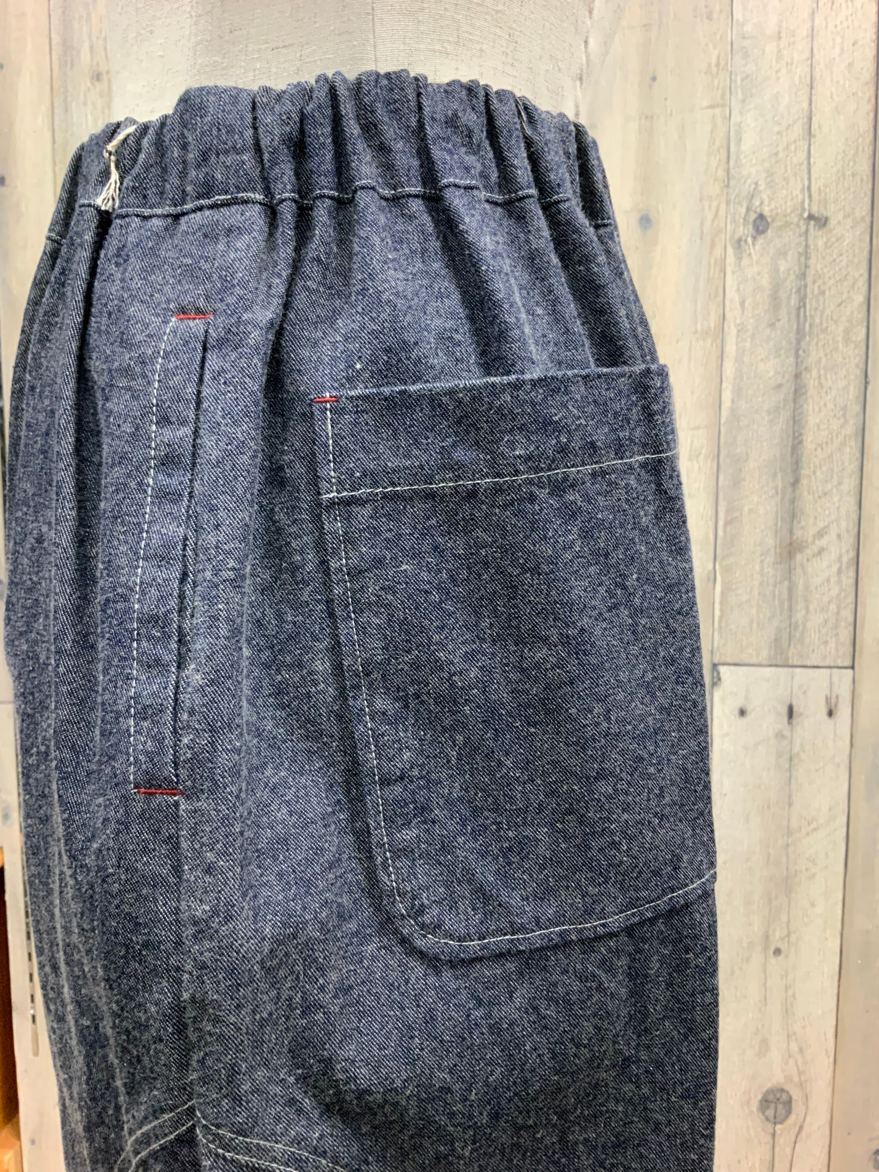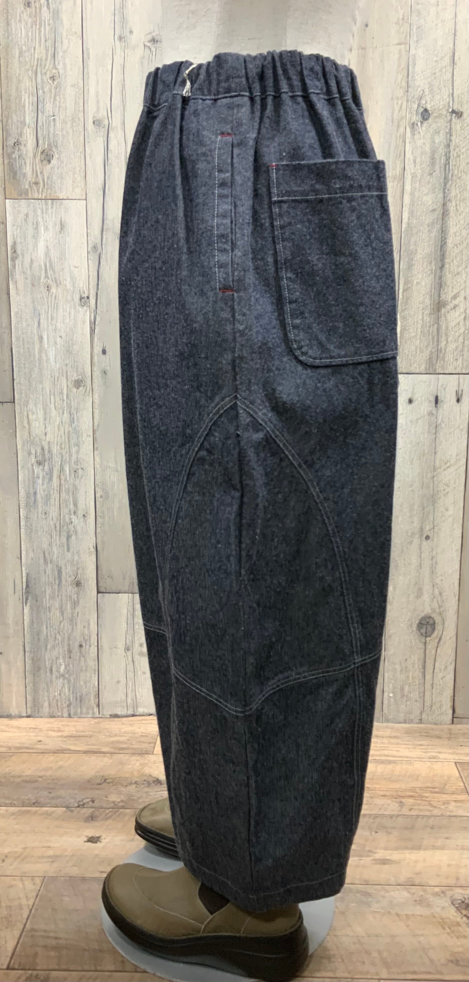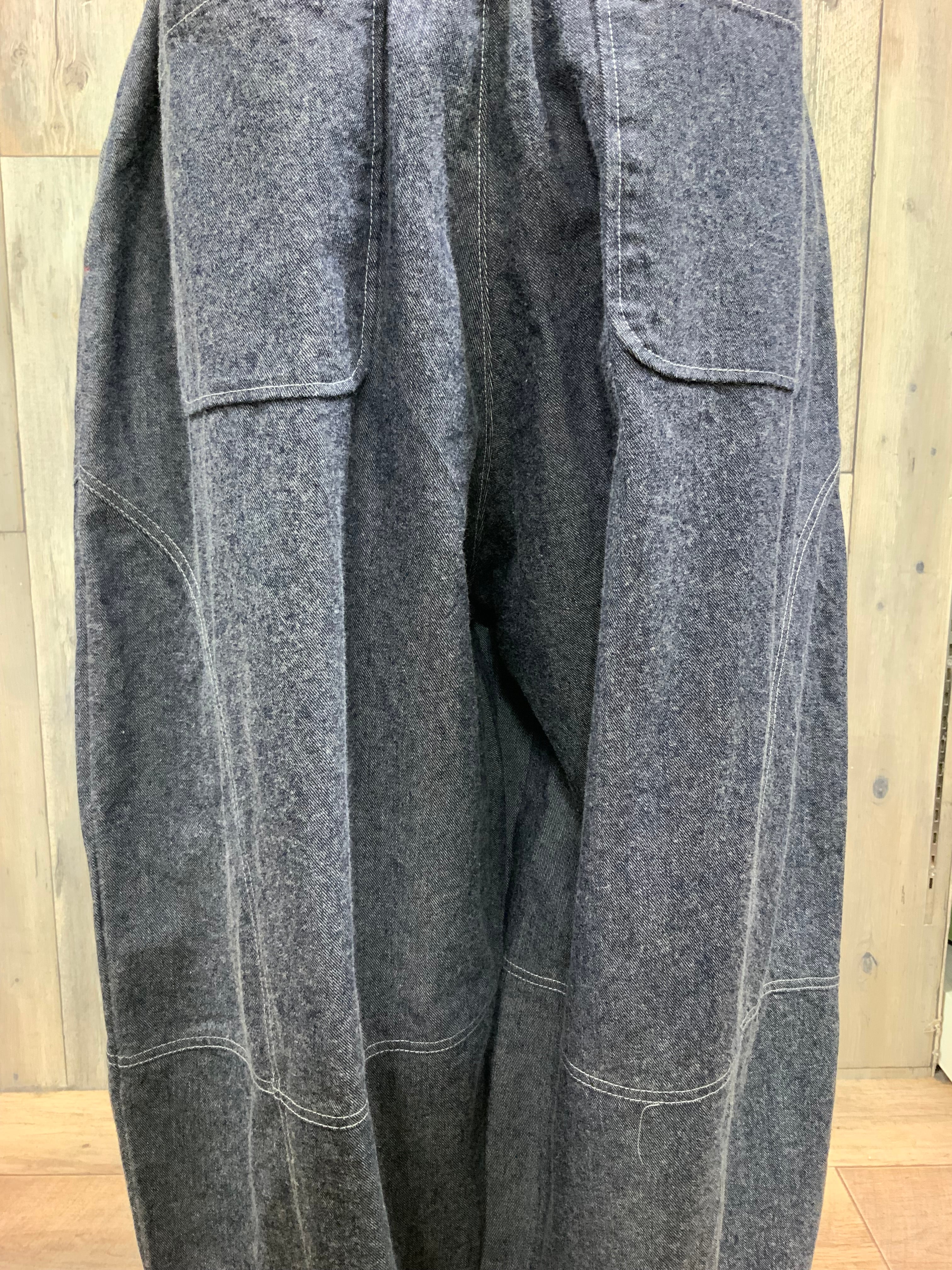 しっかりした厚手インディゴ染めのデニム素材のダボパンツ