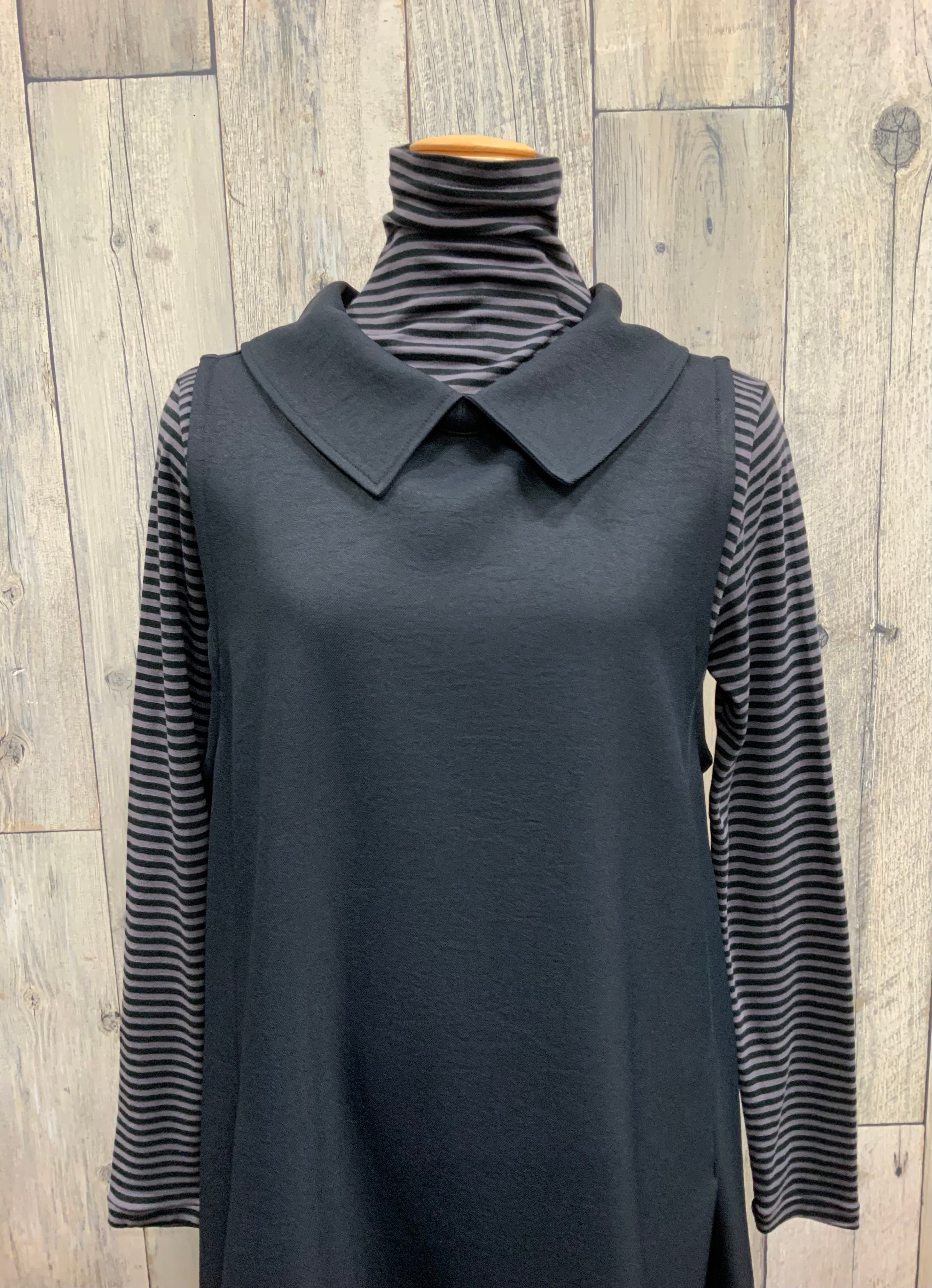 ほんのちょっとストレッチにきいた質感がしっかりとしたポリエステルのジャンバースカート