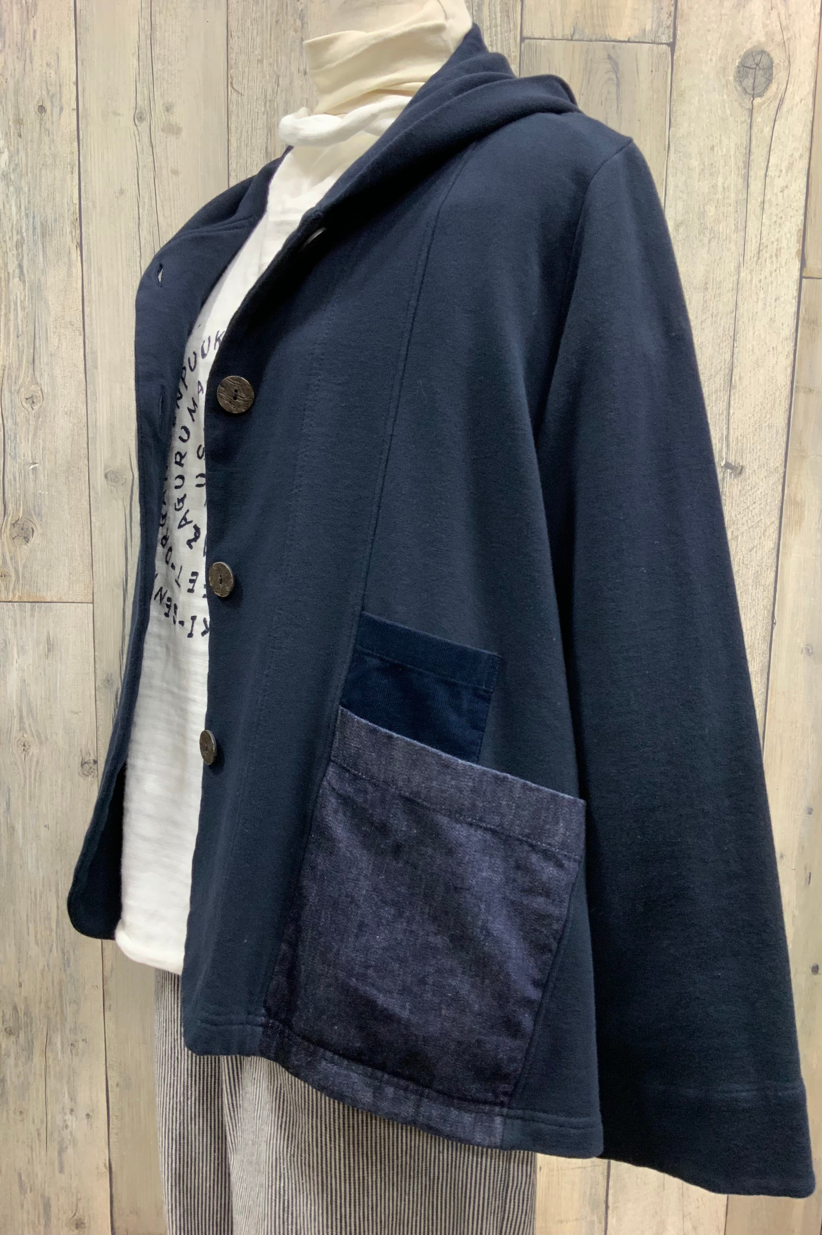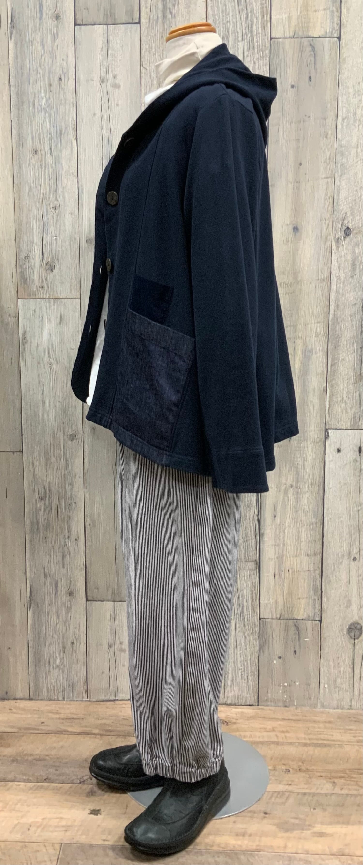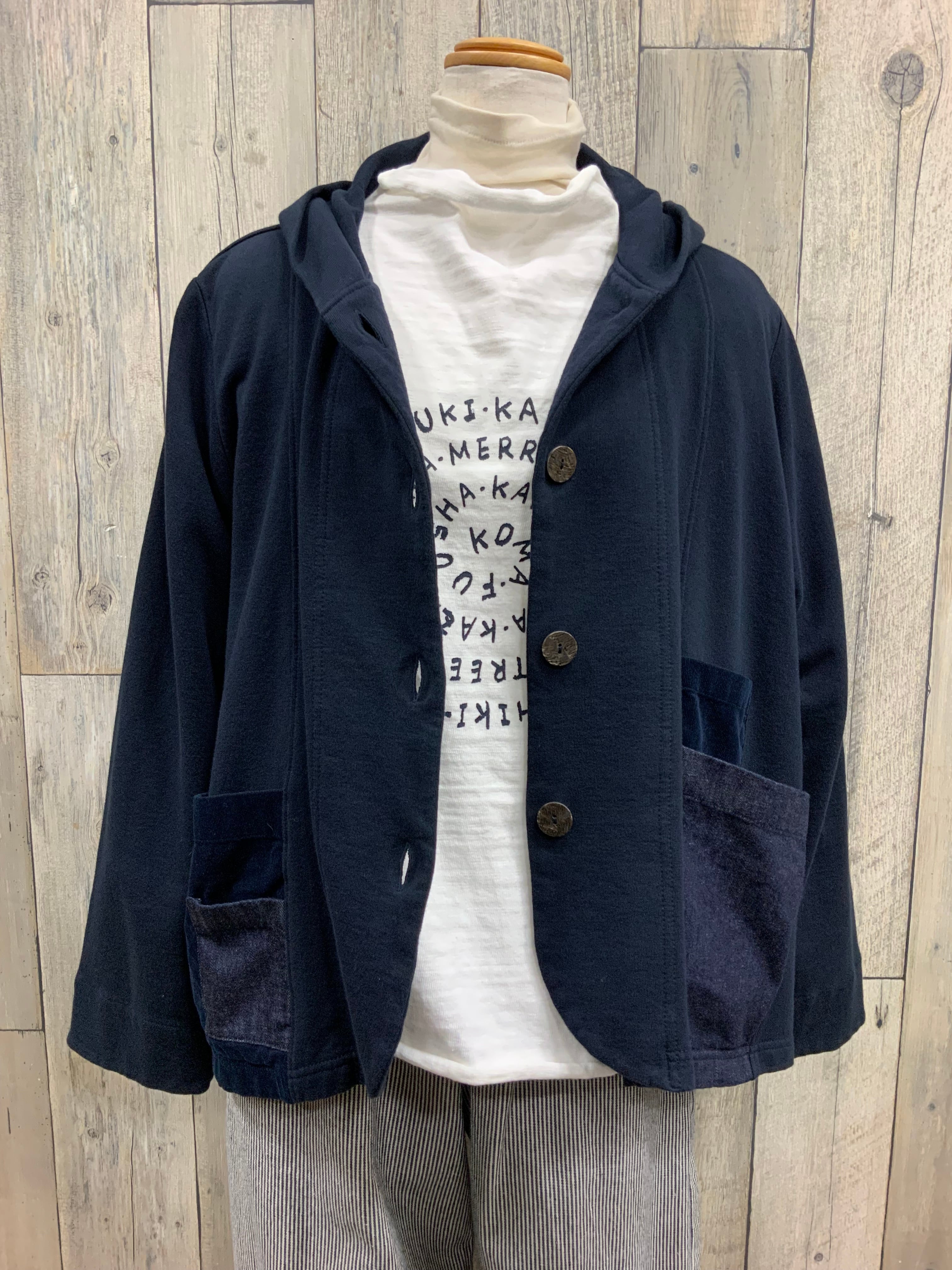 ポケット部分と袖折り返し部分は綿コーデュロイとインディゴ染めのデニム素材