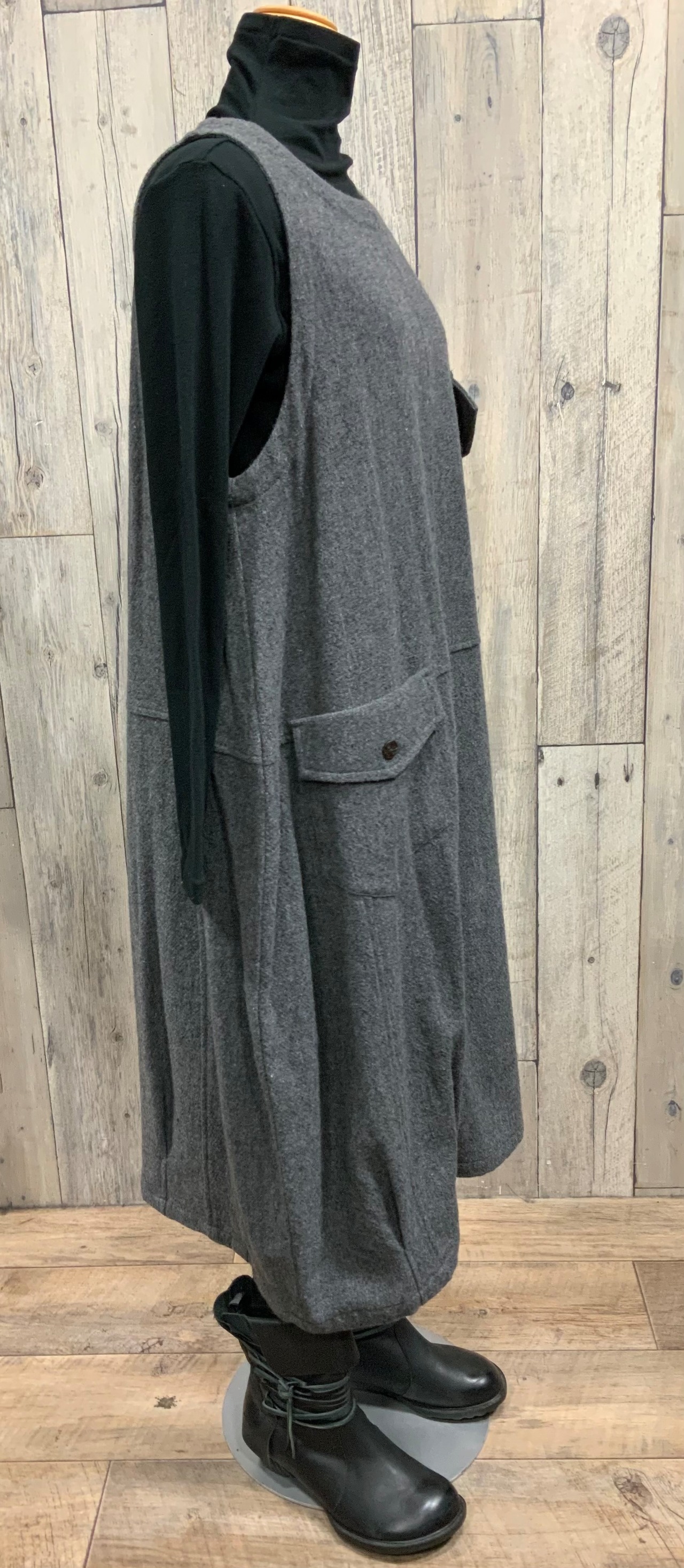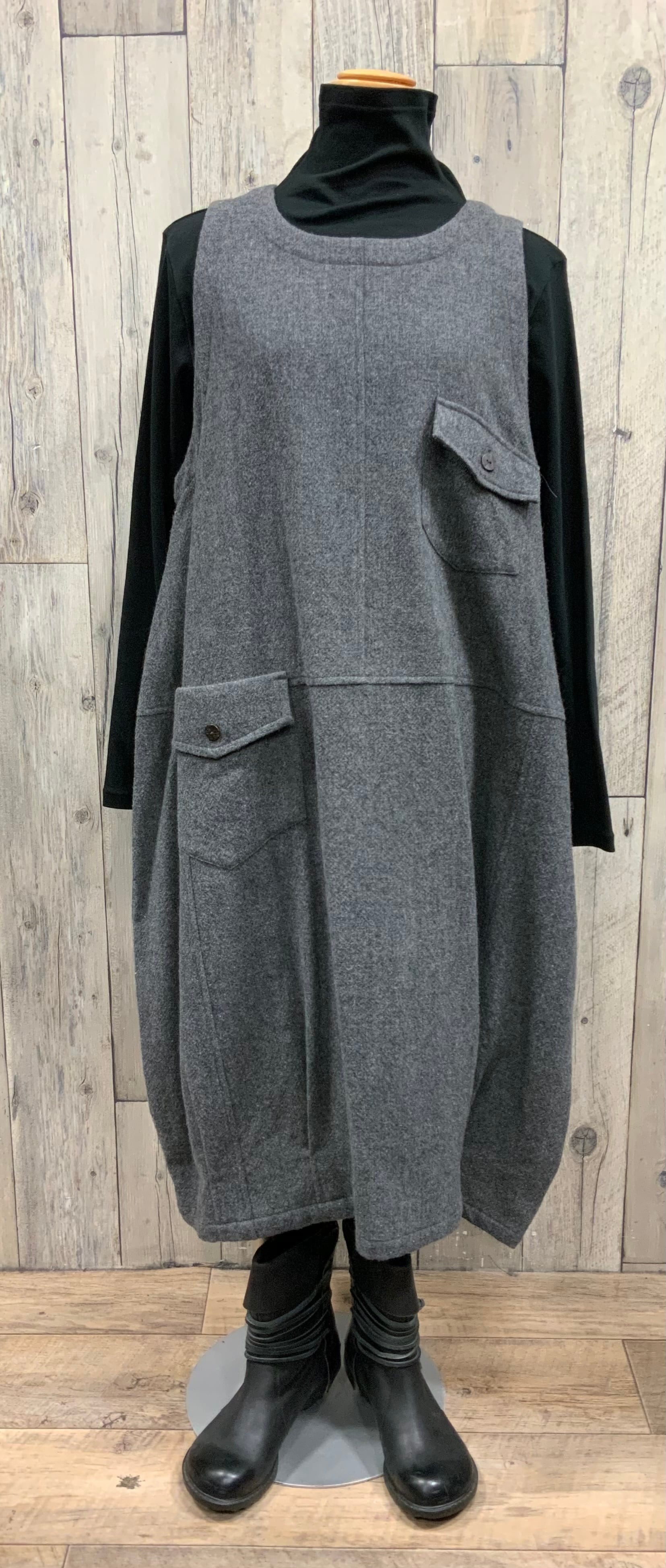 暖かいウール系のジャンバースカート