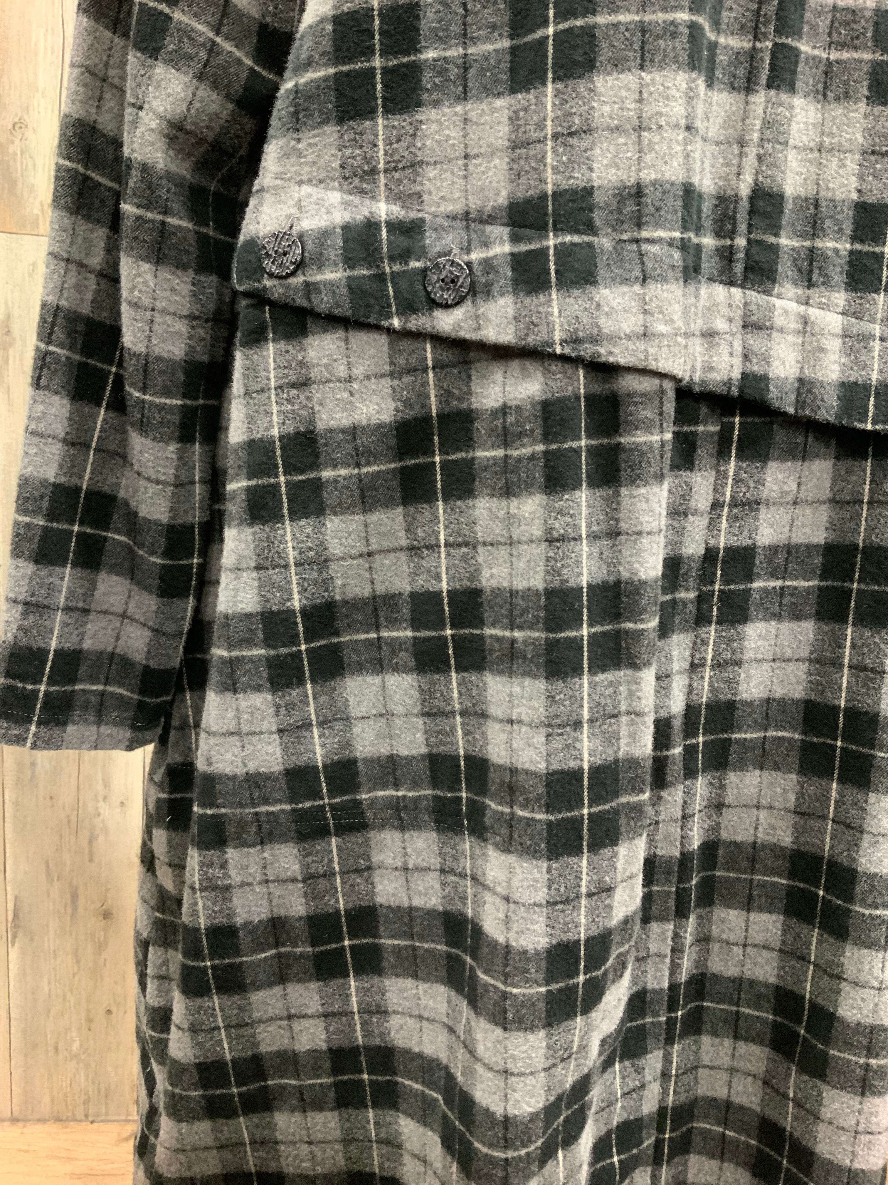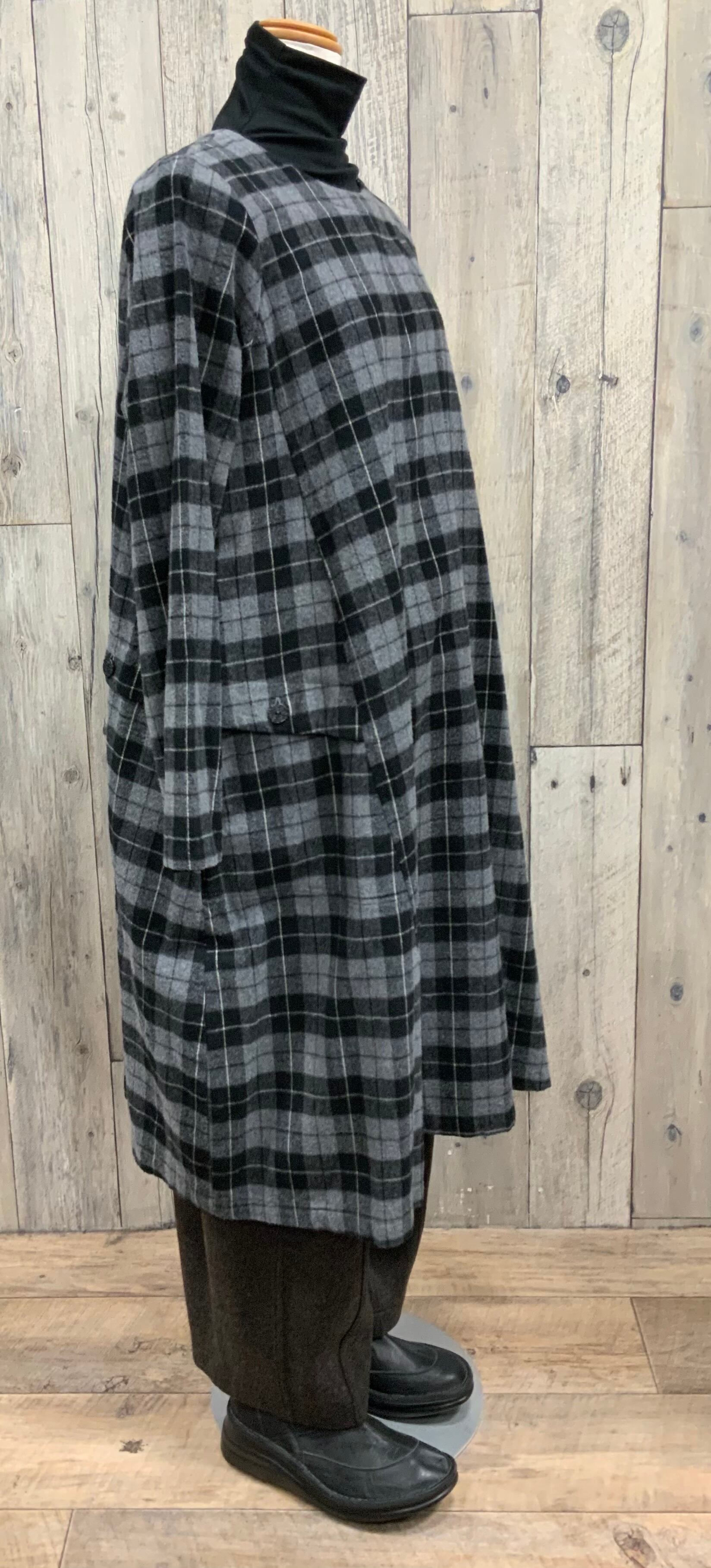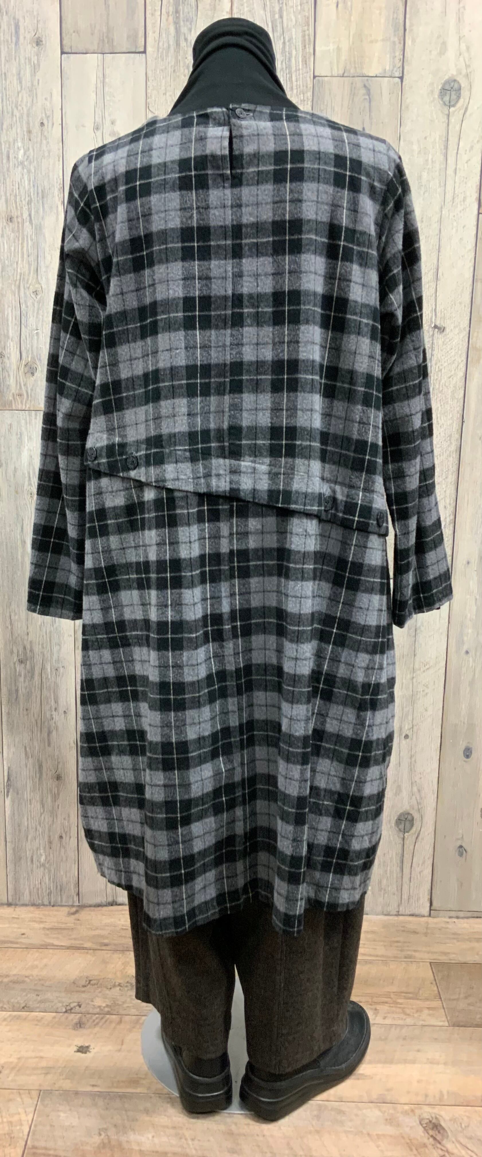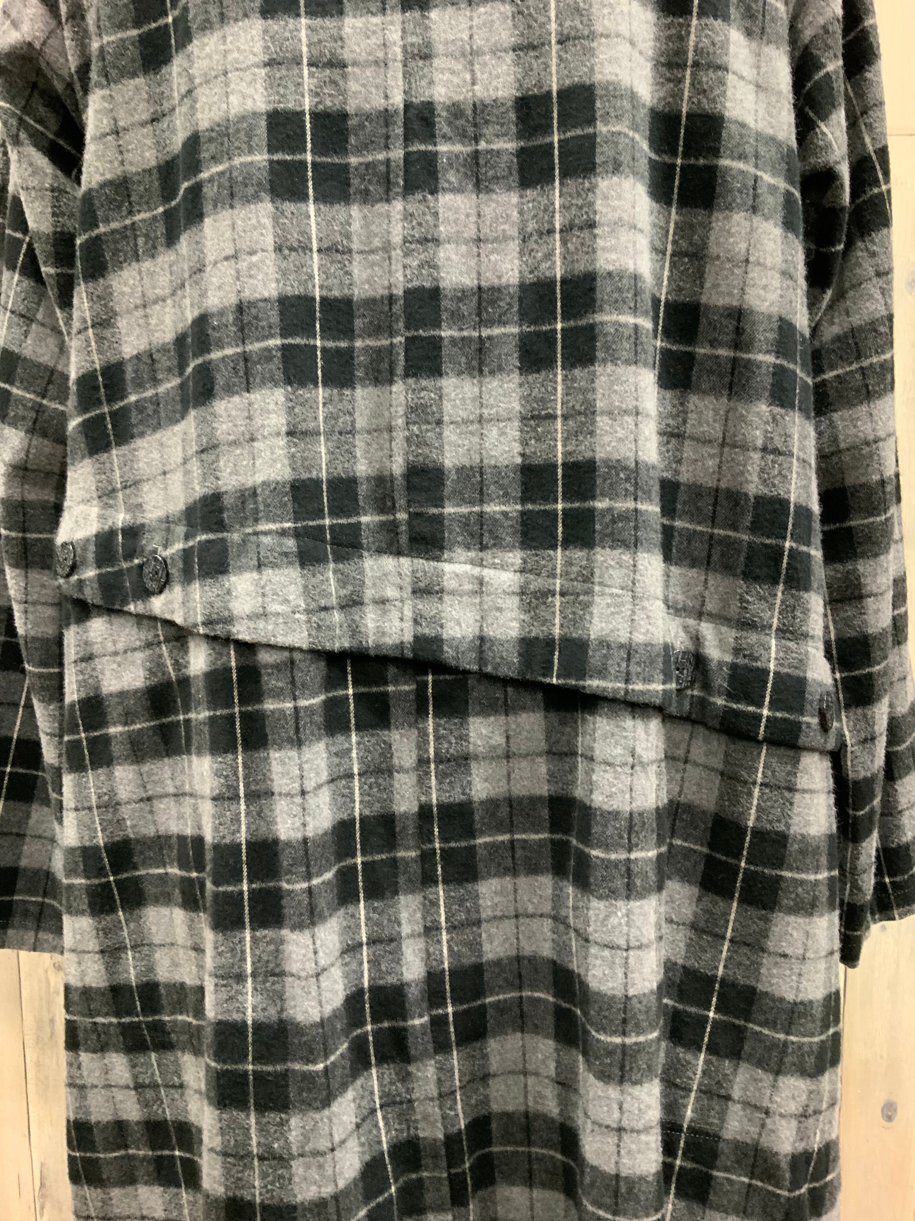 後ろ見頃は斜めに切り替えになっていて左右にボタン留めポケットがあるデザイン
