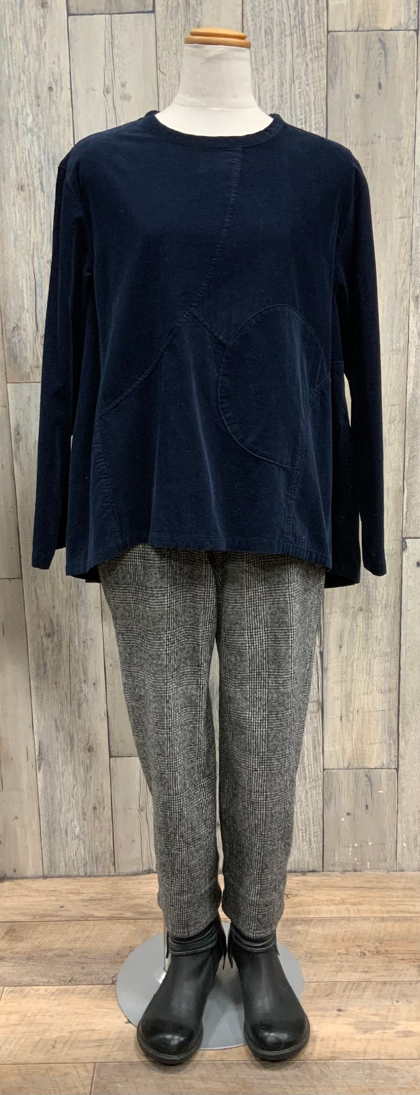 前見頃の切り替えと円形っぽいパッチワーク風のデザインがポイント