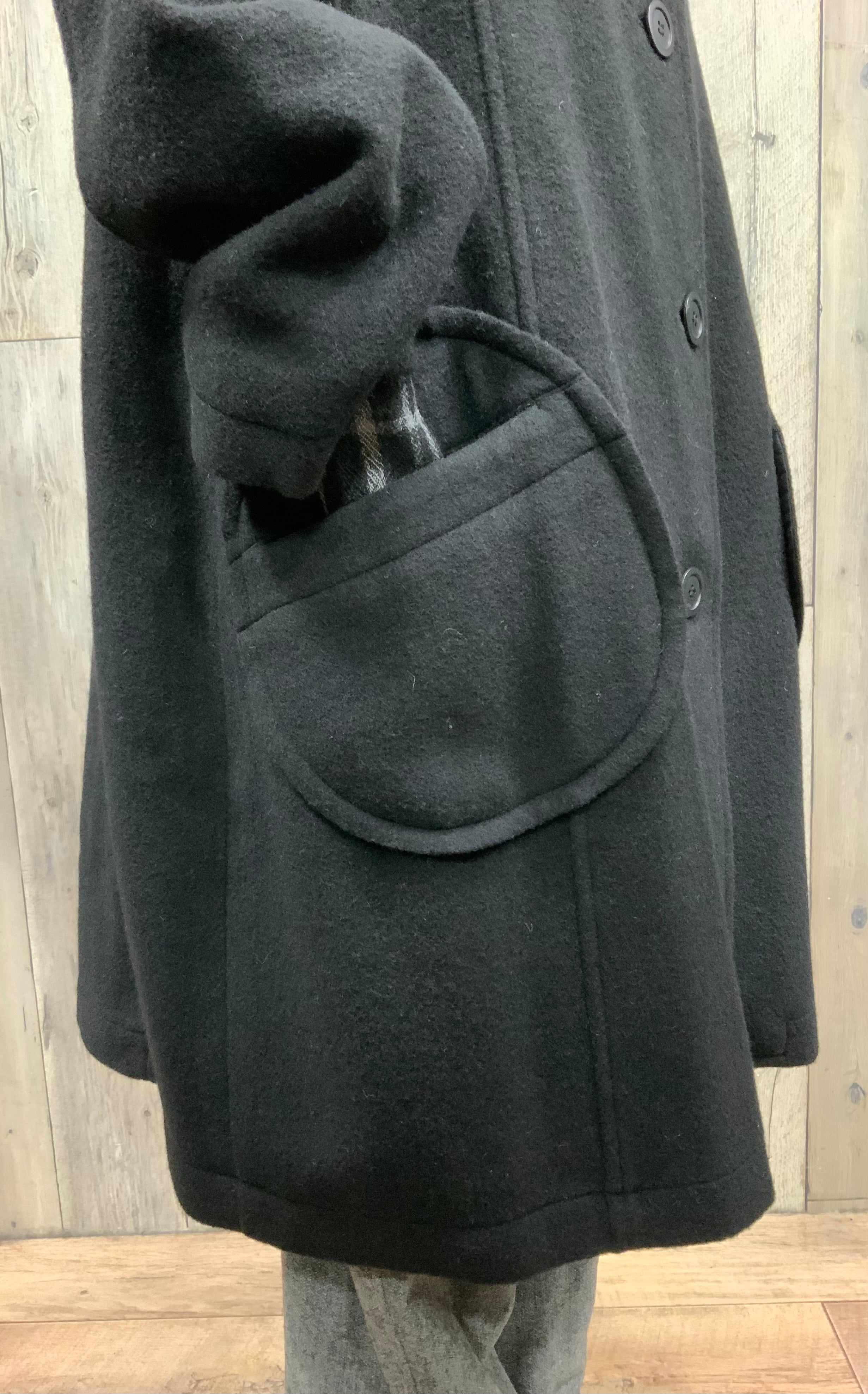 裏地付きの暖かい毛足のあるフードハーフコート