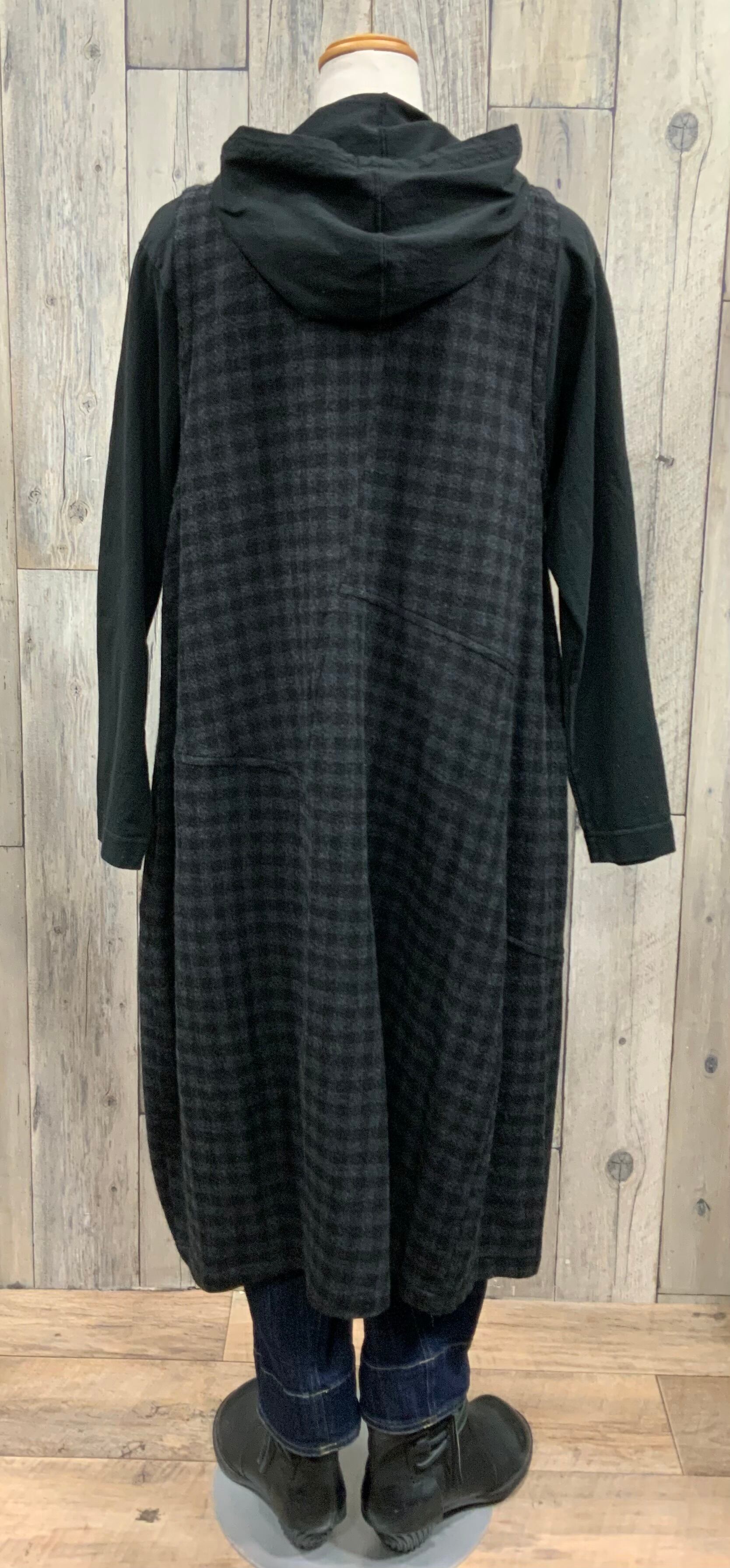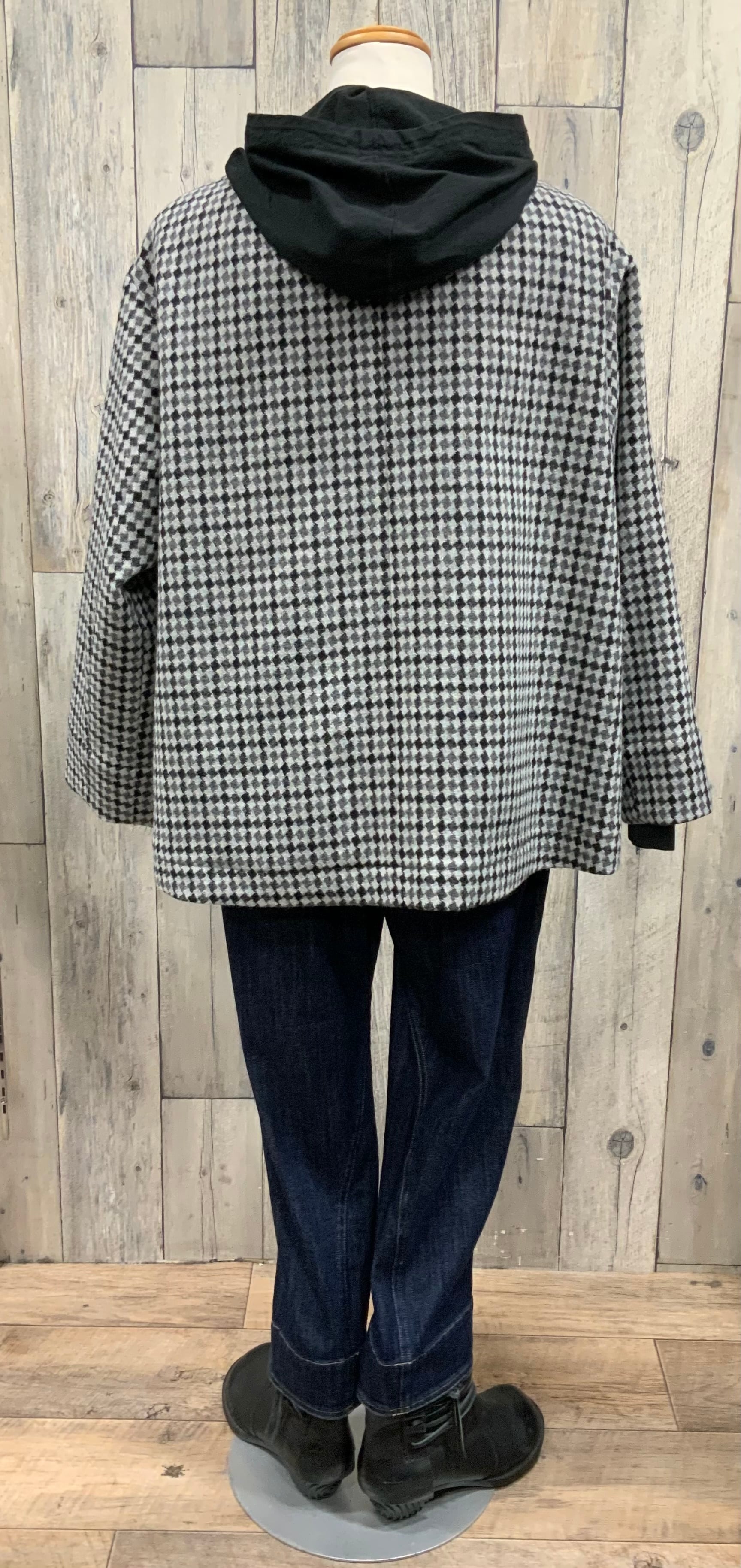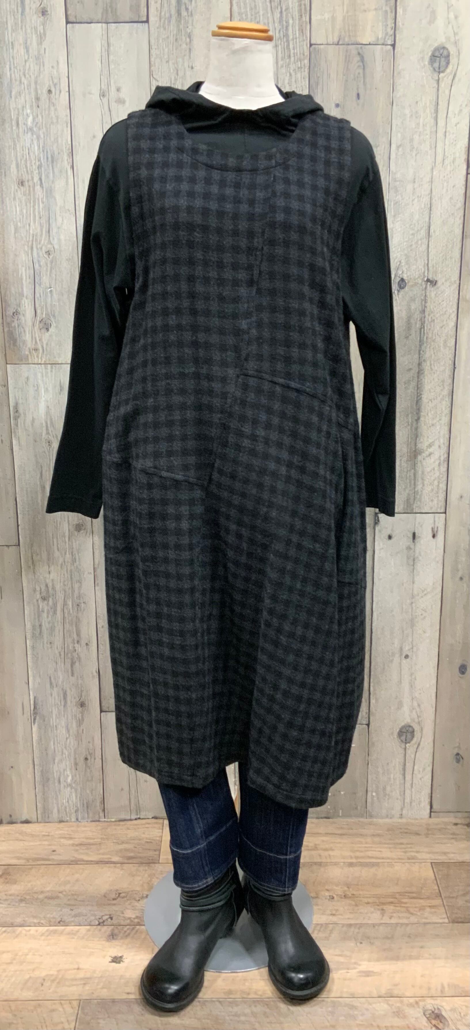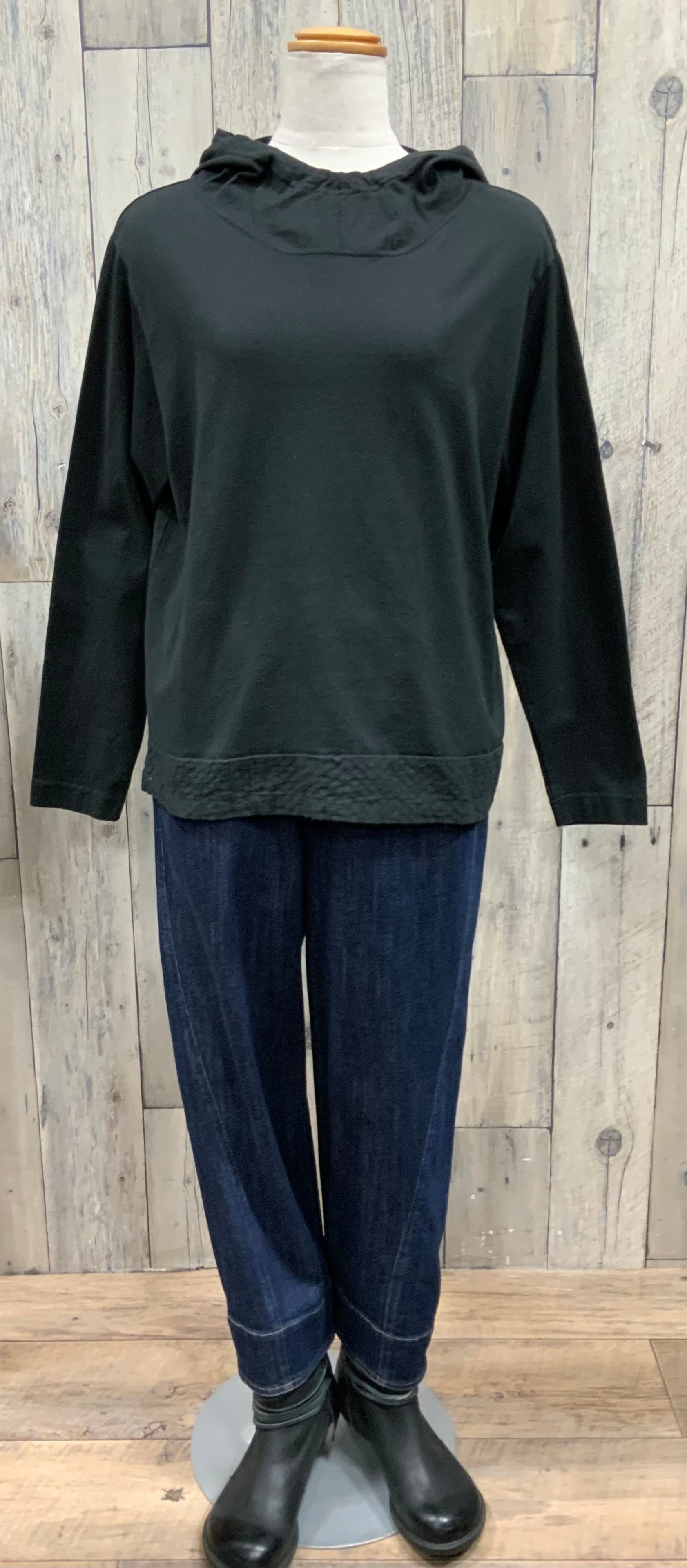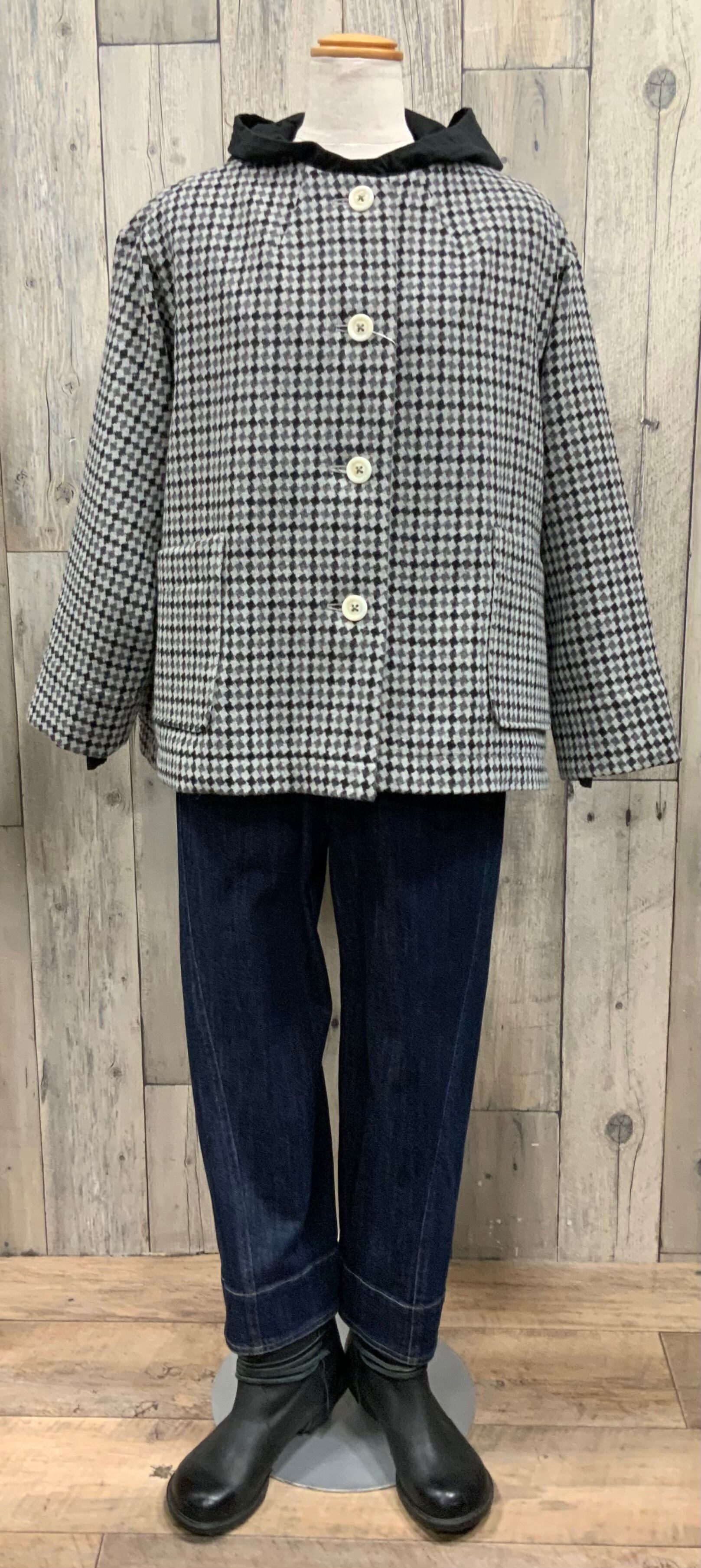 ジャンバースカートやカットソーの重ね着、様々なインナー着にフードが可愛いくポイントになります