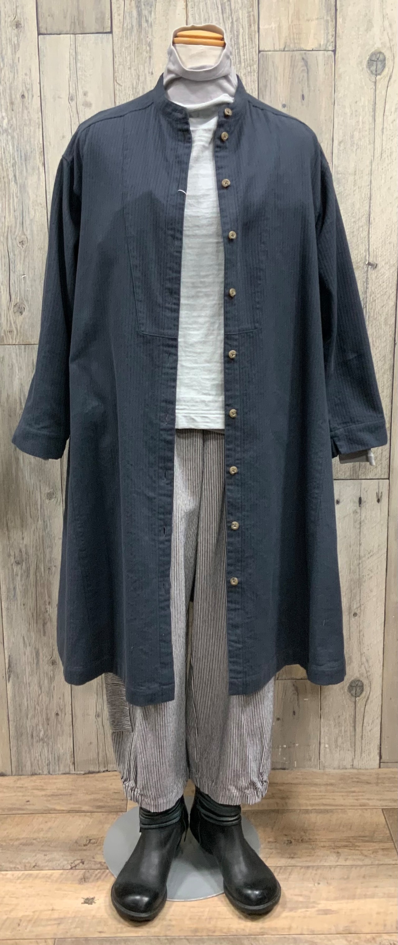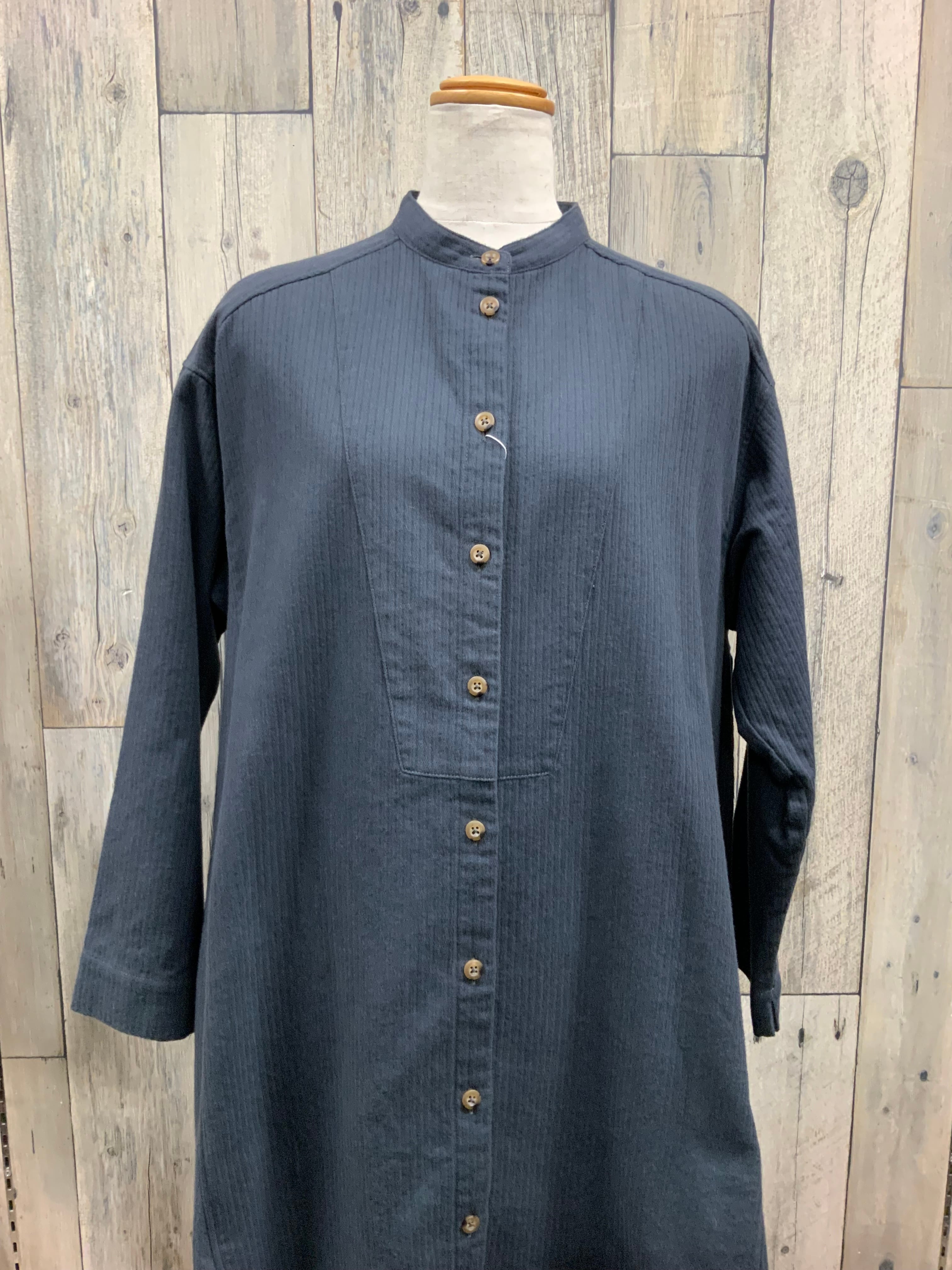 綿起毛の前開きロング丈のブラウス