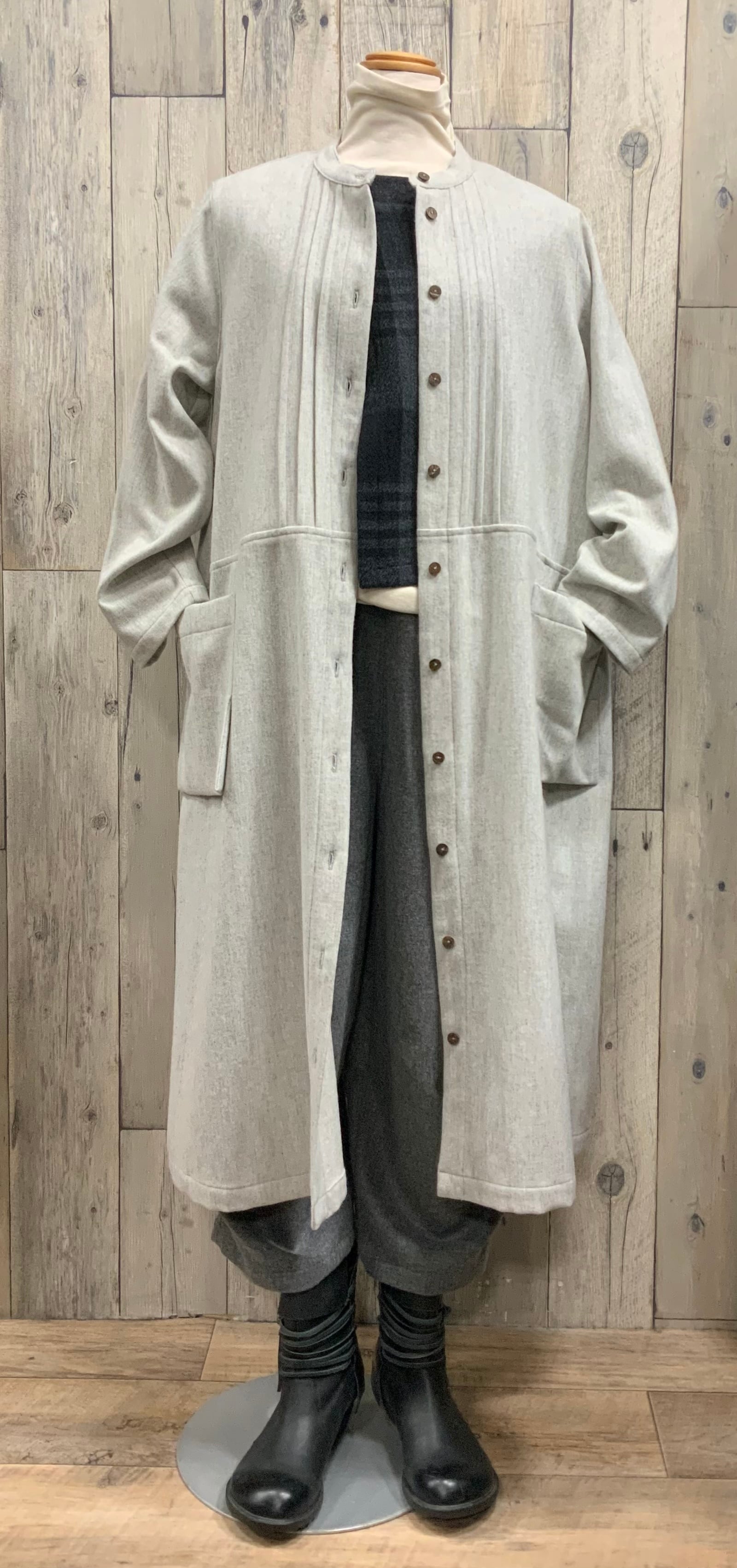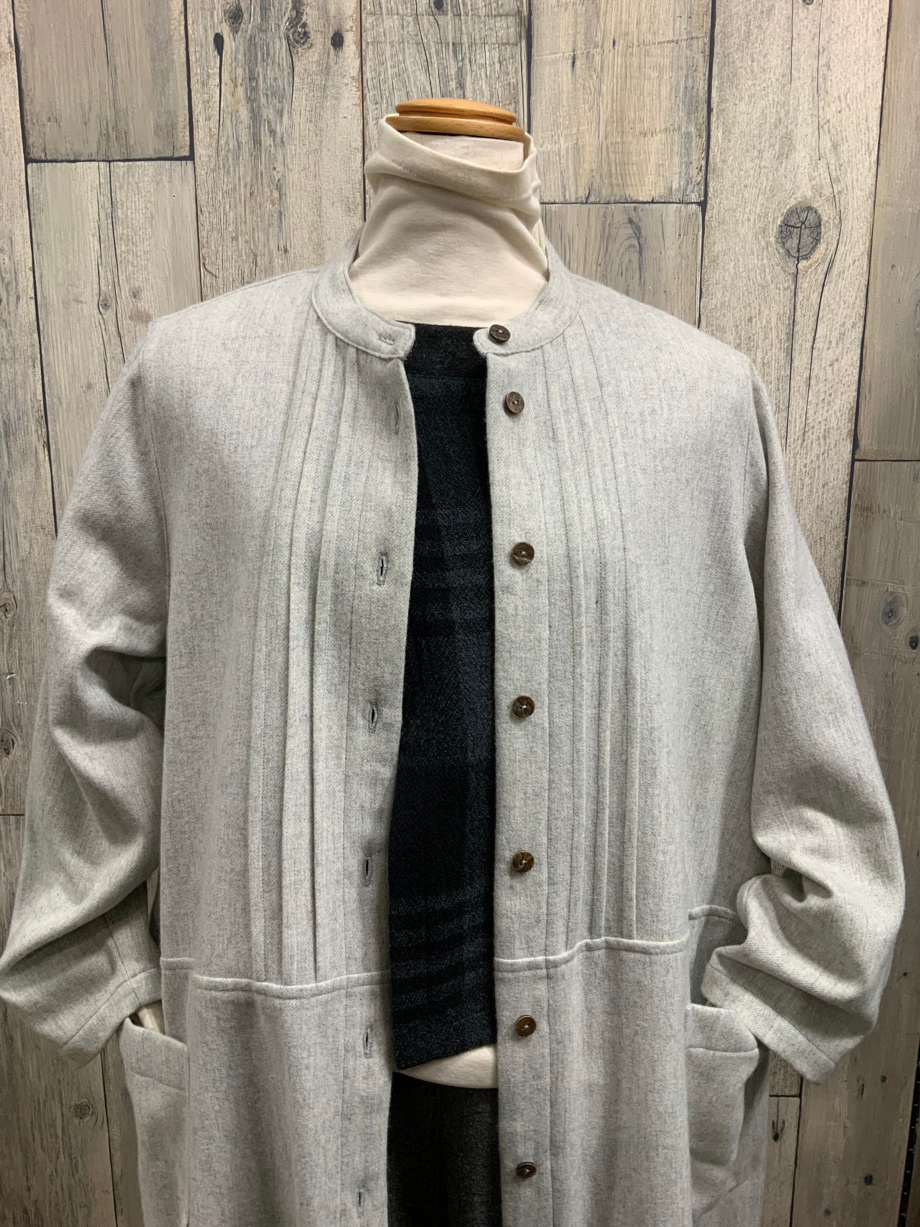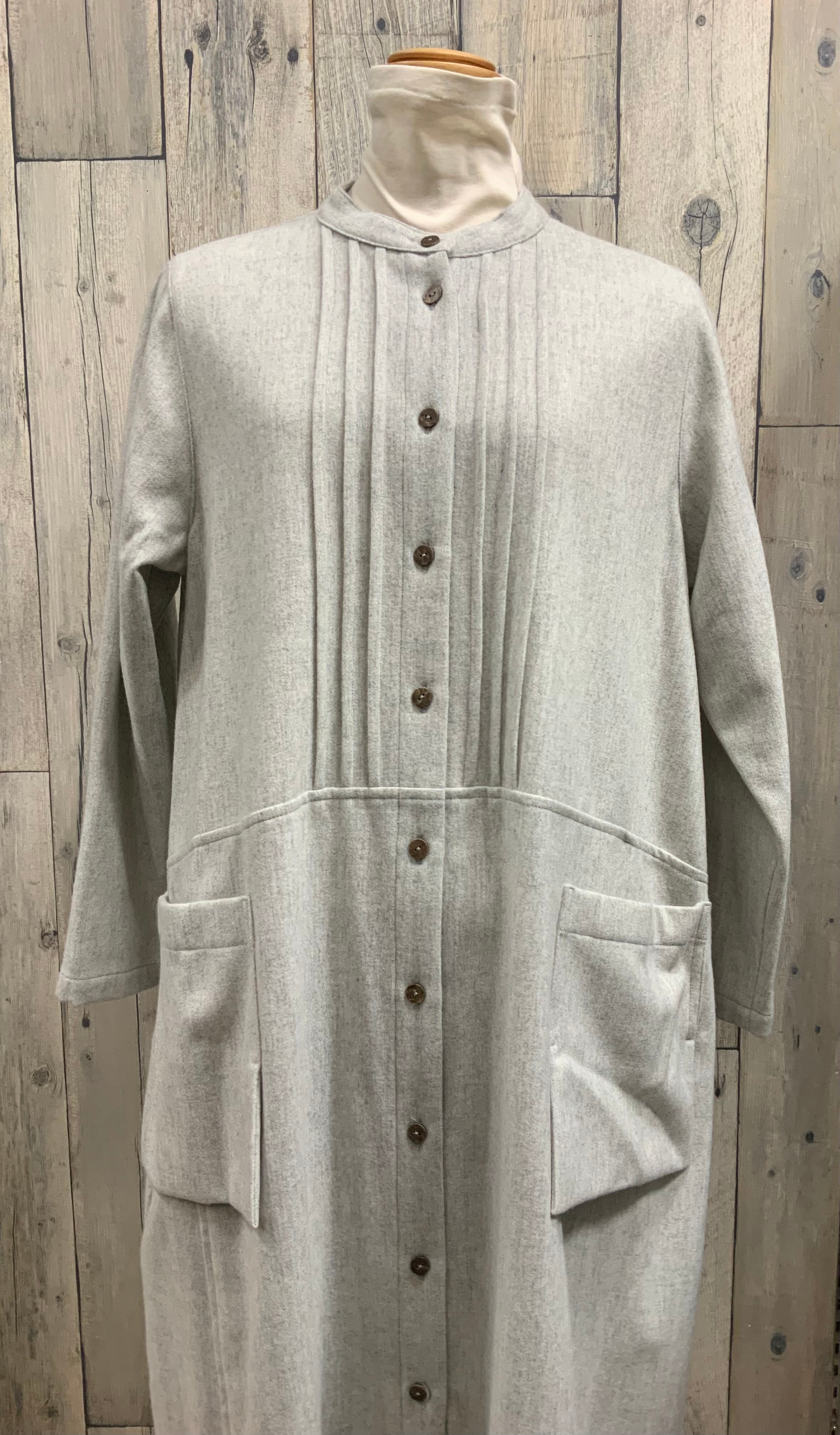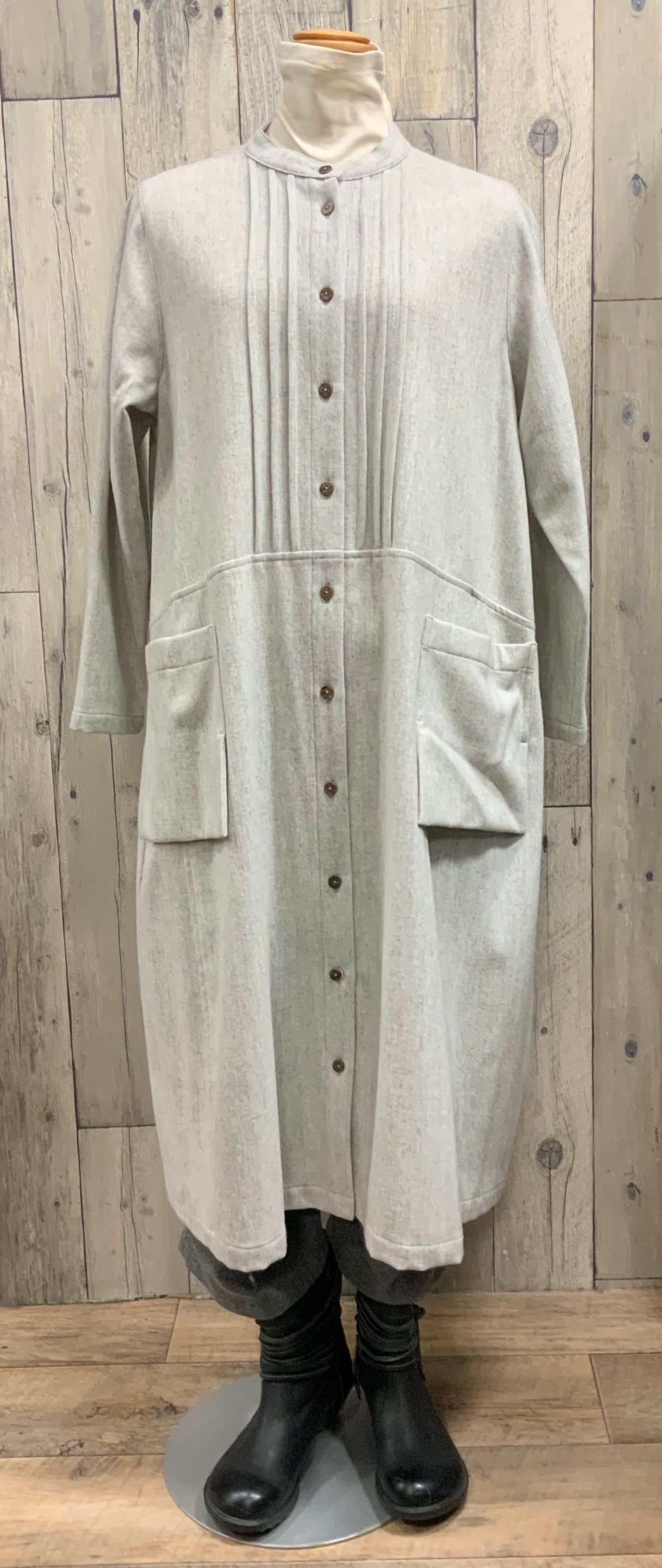 ソフトなウール混素材の前開きのゆったり軽くて暖かい素材のワンピース