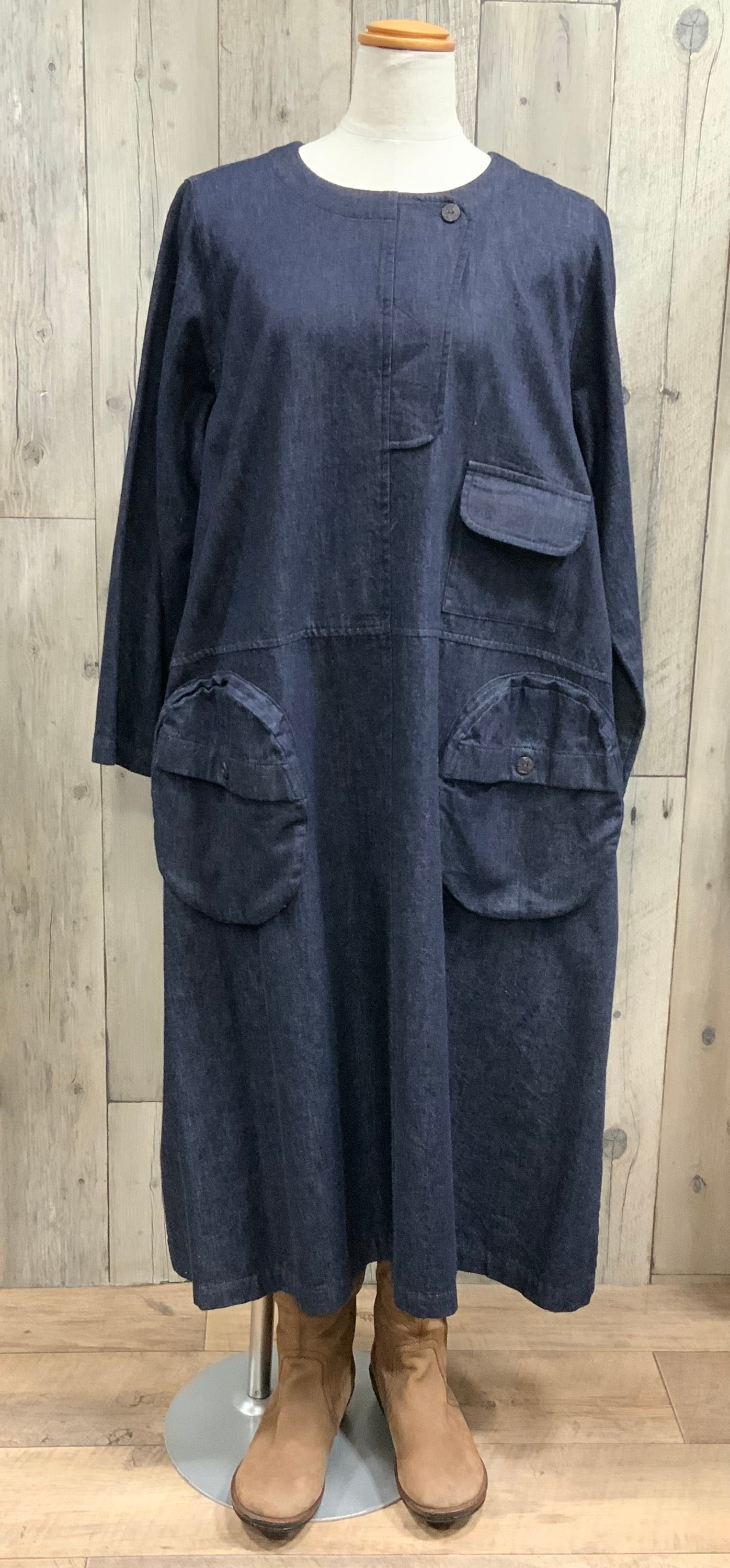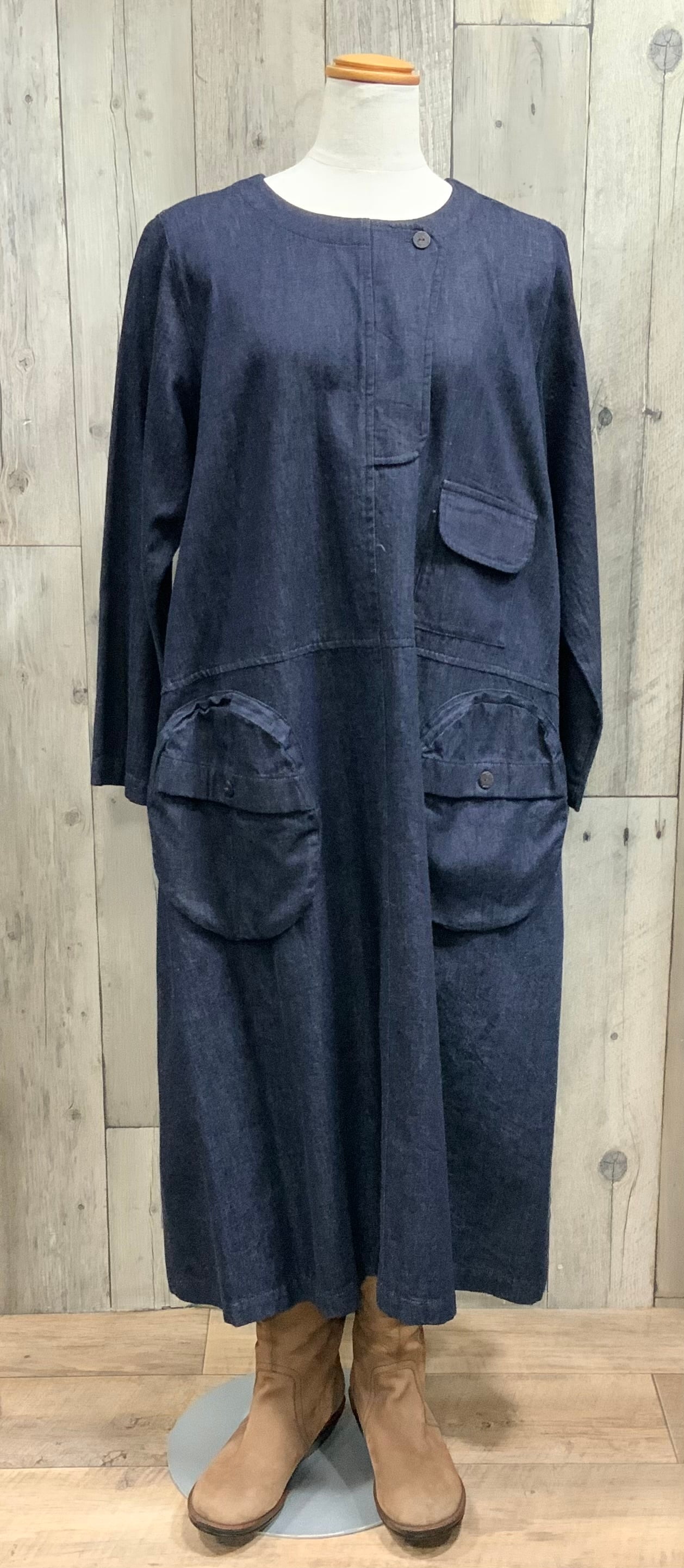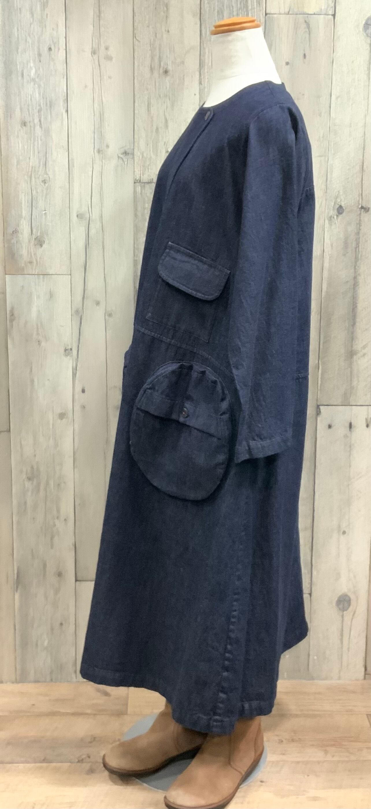 インディゴ染めのカジュアルワンピース